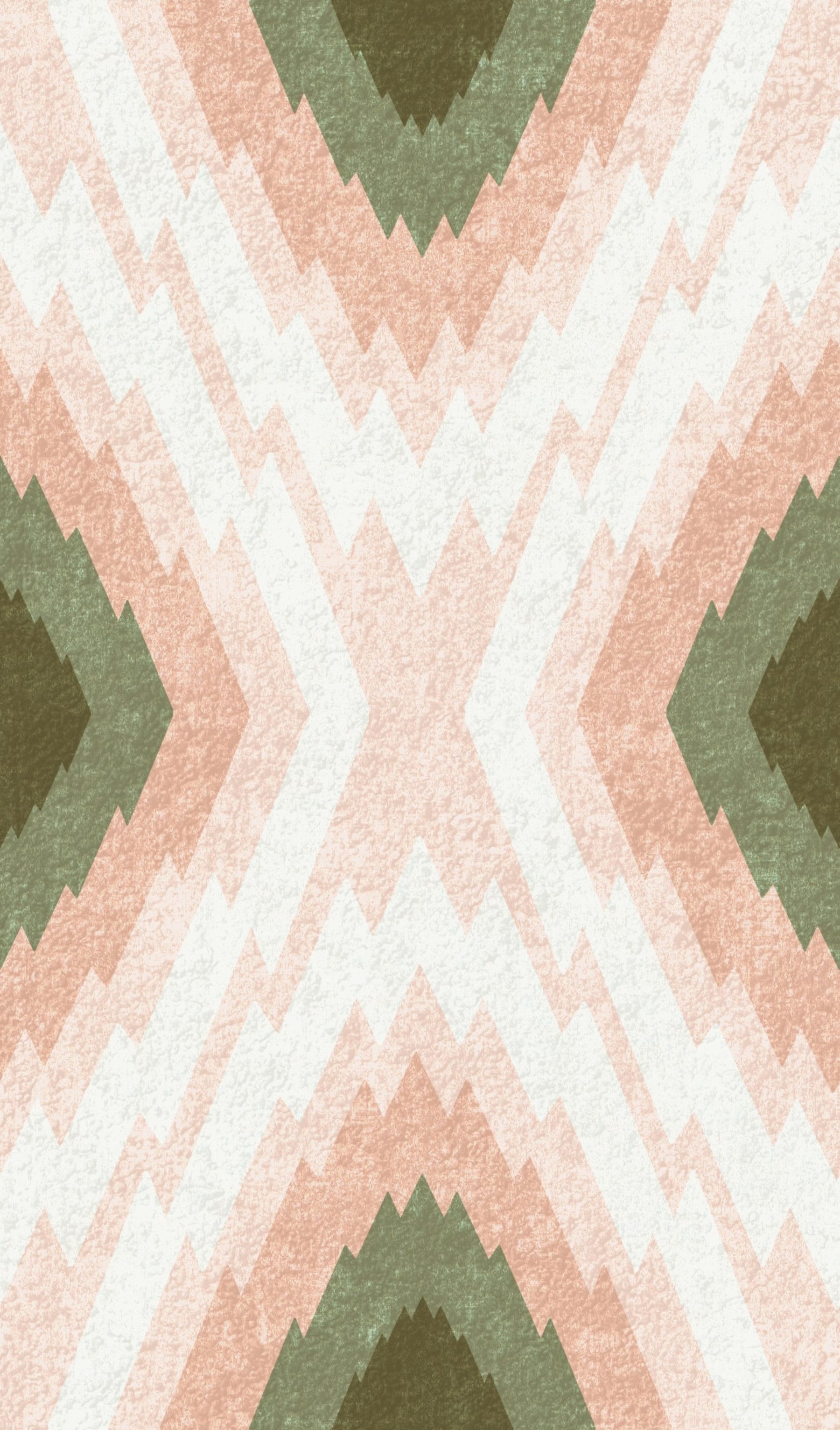 Ignite your space with Flame Stich Pink and Green, a captivating wallpaper that weaves together a tapestry of earthy tones and dynamic design. This pattern features a rhythmic zigzag, reminiscent of stylised flames, rendered in a soothing palette of muted pinks, soft whites, and grounding greens. The subtle texture adds depth and dimension, creating a visually intriguing surface that's both calming and stimulating. Evoking a sense of natural warmth and understated elegance, this wallpaper brings a touch of organic sophistication to any room. Whether you're looking to create a tranquil retreat or a visually engaging focal point, 'Flame Stich Pink and Green' offers a unique blend of colour and form that will transform your walls into a work of art. Perfect for adding a touch of contemporary flair with a hint of vintage charm, this wallpaper is sure to spark conversation and elevate your interior design.