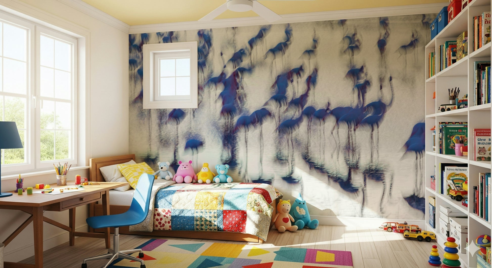 Introduce a serene touch to your space with this ethereal wallpaper. The blurred flock of flamingos in shades of blue and grey evokes a dreamy, tranquil ambiance. The design suggests movement and depth. It's perfect for creating a relaxing atmosphere in a bedroom or study. Transform any room with this unique wallpaper for walls, bringing a soft, artistic touch that complements both modern and minimalist interiors.