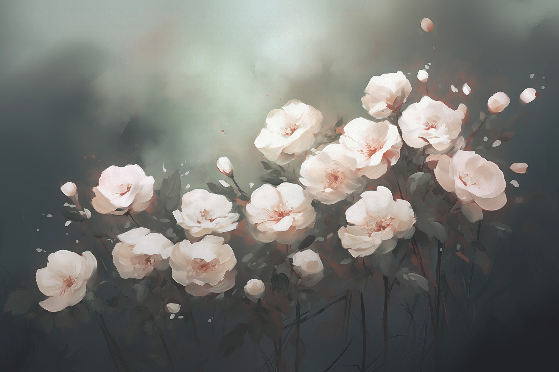 The White Roses Wallpaper Mural features a delicate arrangement of soft white roses set against a muted, serene background. The gentle brushstrokes and subtle color palette create a calming and elegant look, suitable for a variety of spaces like bedrooms or living rooms. Made with high-quality materials, this rose wallpaper is easy to install and durable. The mural brings a natural, timeless floral design to your walls, offering a simple yet graceful touch to your home décor.