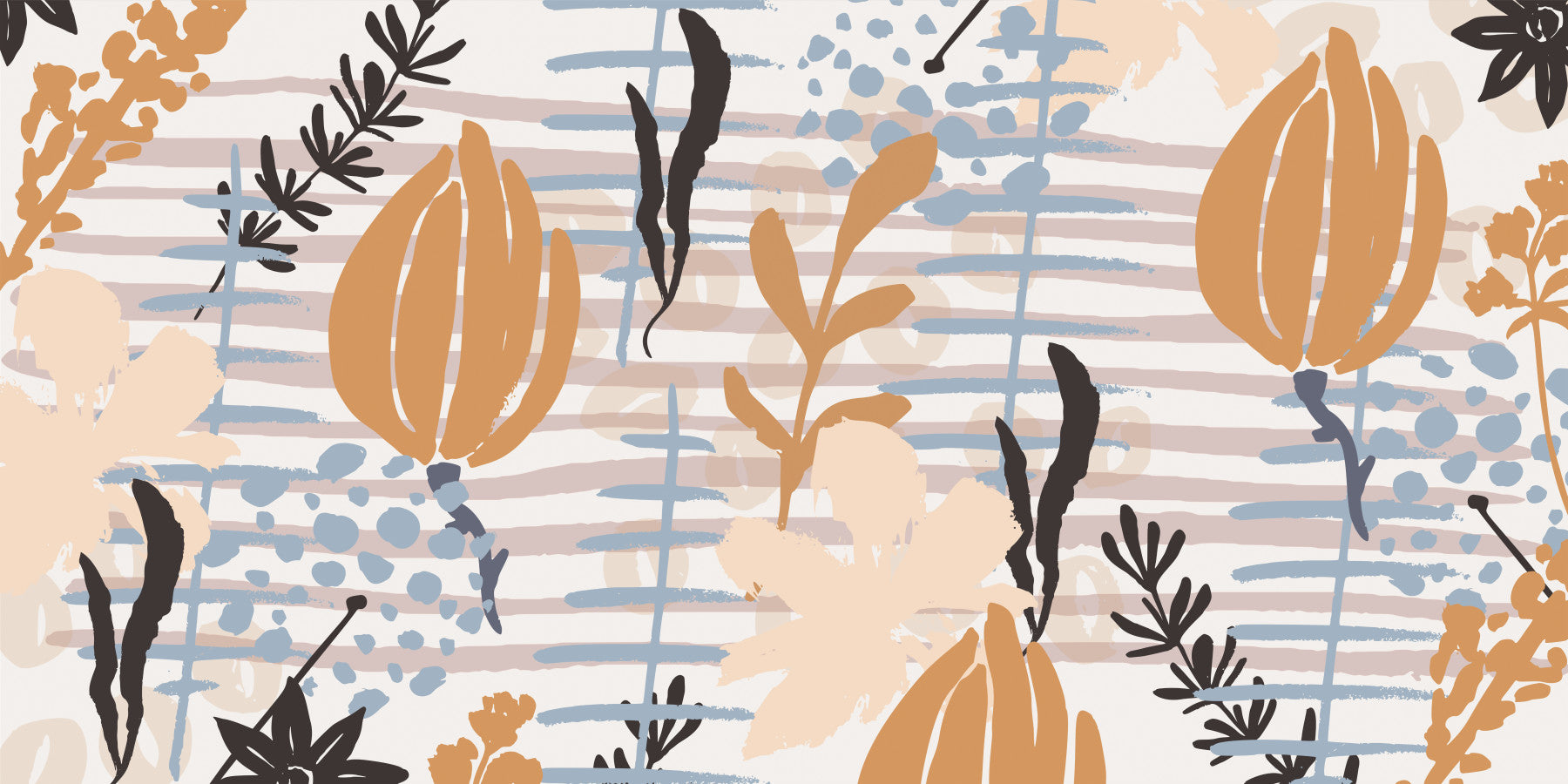 Elevate your interior decor with this stylish wallpaper for walls, where abstract florals meet modern stripes. The pattern features organic shapes in muted shades of tan and beige, set against a backdrop of textured blue and blush stripes. Introduce a touch of artistic charm into your bedroom or living room with this unique design. The gentle hues blend seamlessly with various decor elements, creating a serene atmosphere.