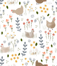 Hen and wildflower pattern wallpaper for walls