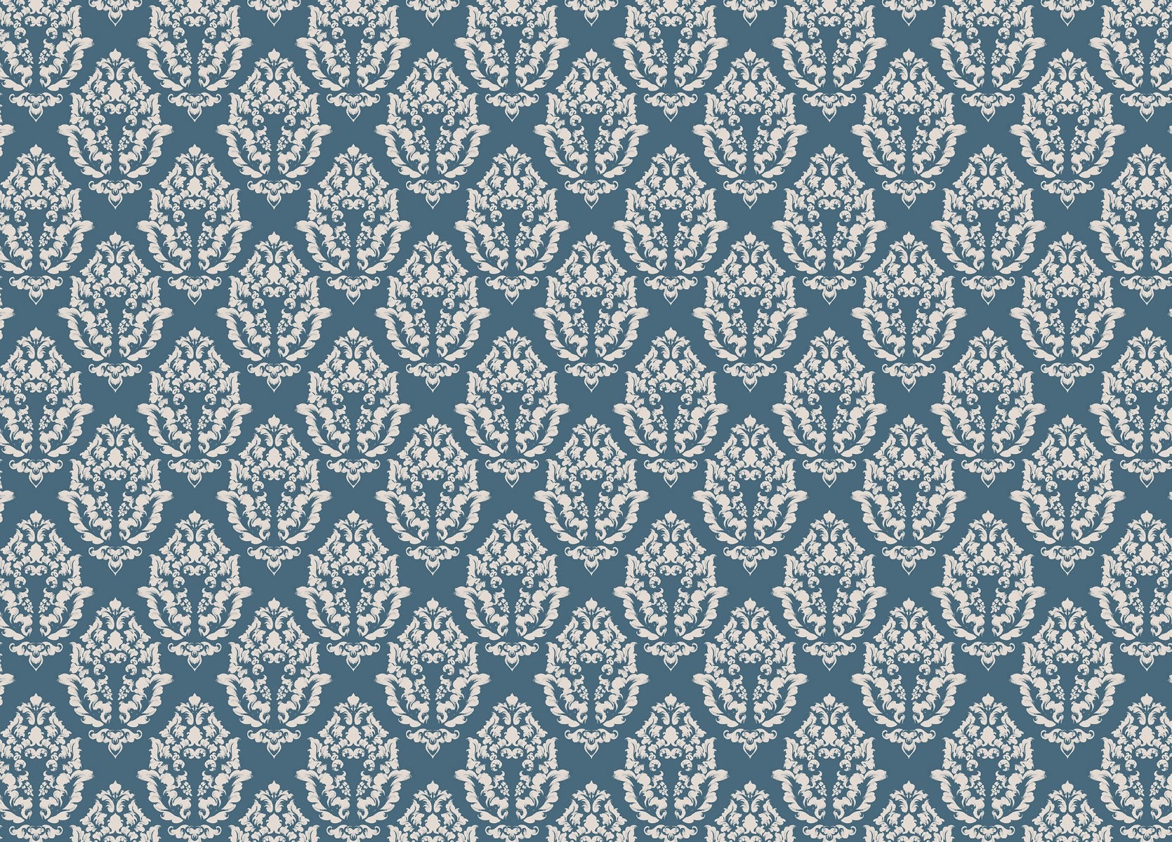 Intricate damask pattern wallpaper in blue