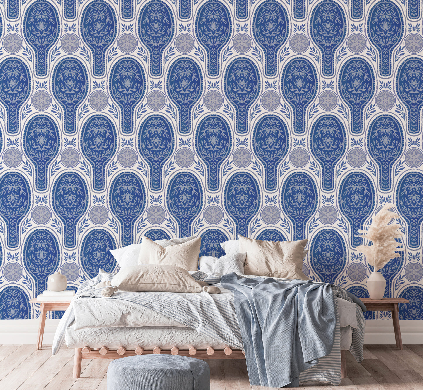 Sophisticated blue floral rockets wallpaper for a bold accent wall.