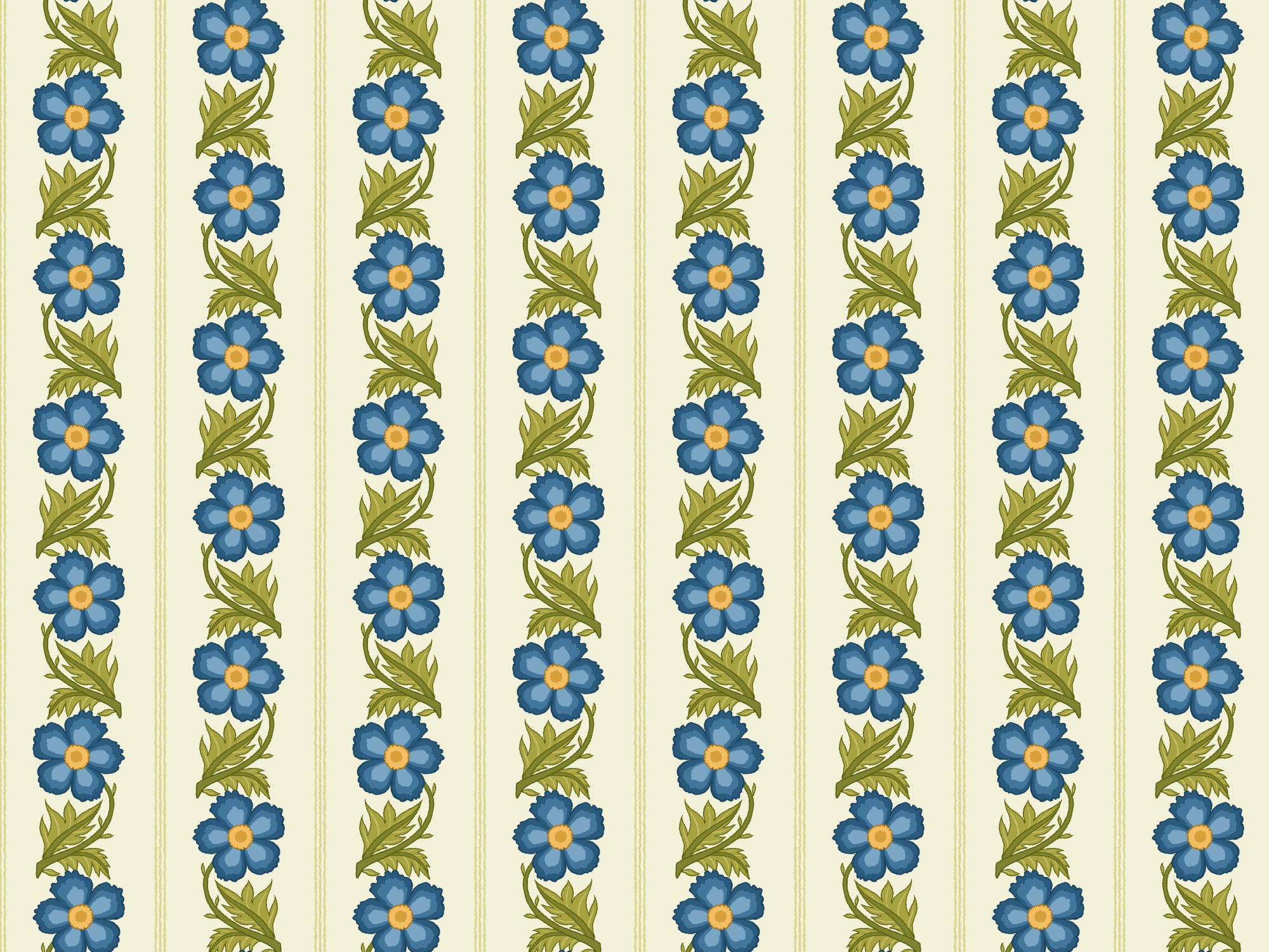 Charming floral stripe blue wallpaper for cozy, classic walls.