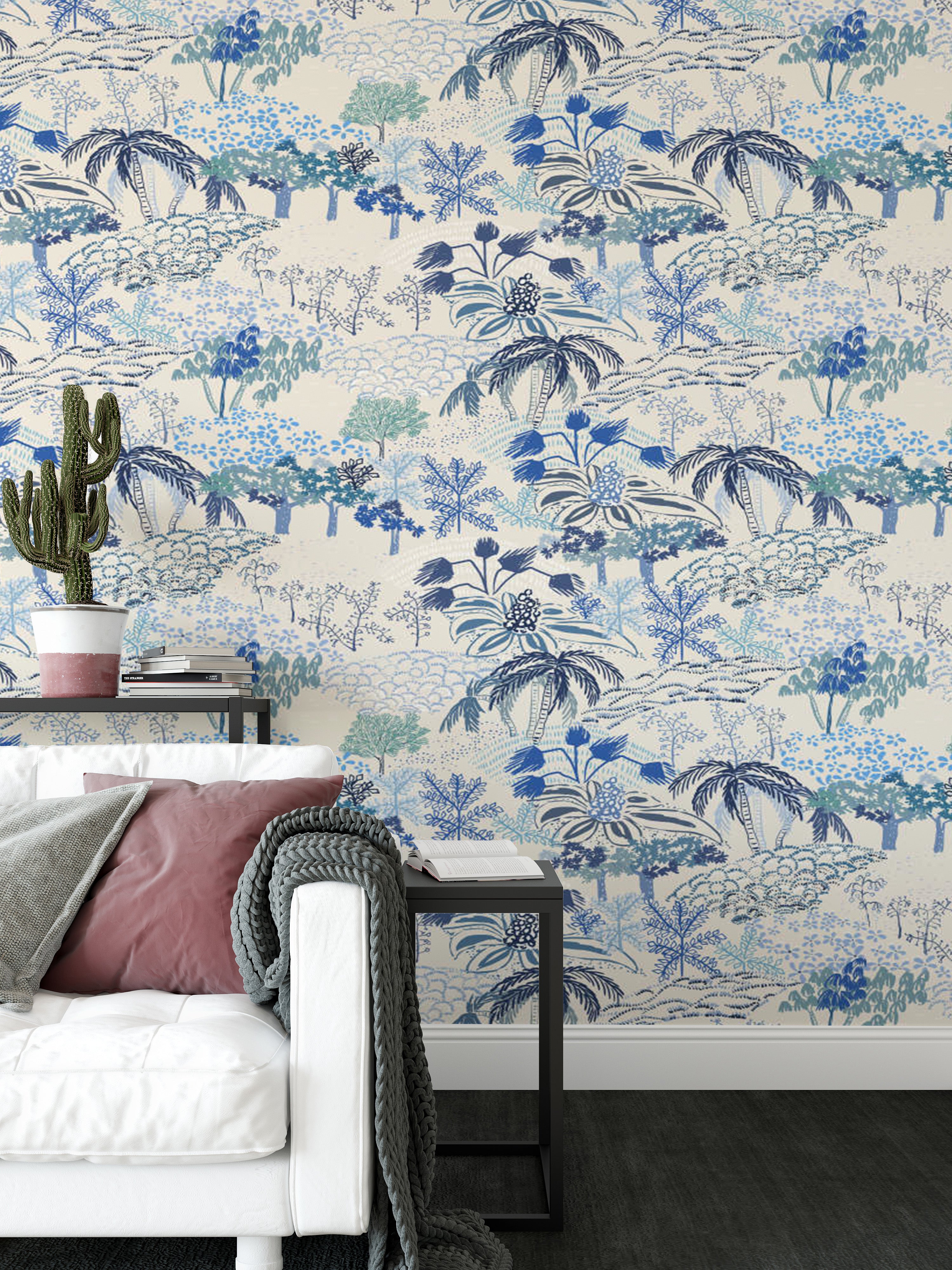 Enchant your walls with the Florentine Fresco Wallpaper, a masterpiece that brings a breath of the Italian Renaissance to your home. Each roll unfolds a canvas graced by an intricate array of azure and sapphire botanicals. A lush bouquet of floral wallpaper motifs dances amidst verdant foliage, crafting a visual garden that blooms all year round. The depth of color and precision of detail form an arresting tapestry, creating an artful retreat in every room. This wallcovering captures the essence of a Florentine garden, inviting a fusion of historical artistry and modern living. Immerse yourself in the timeless beauty of a Florentine landscape reimagined for the contemporary home.