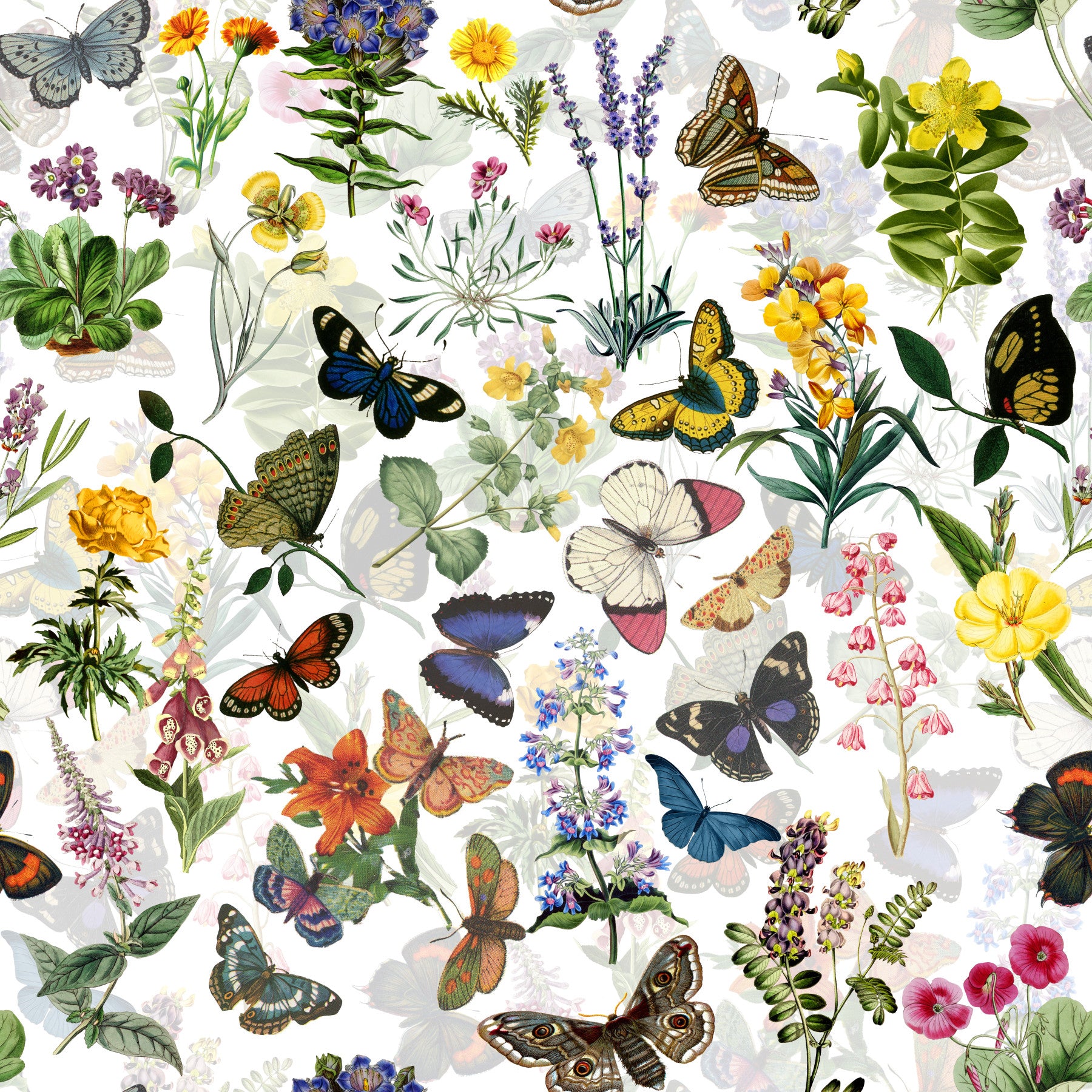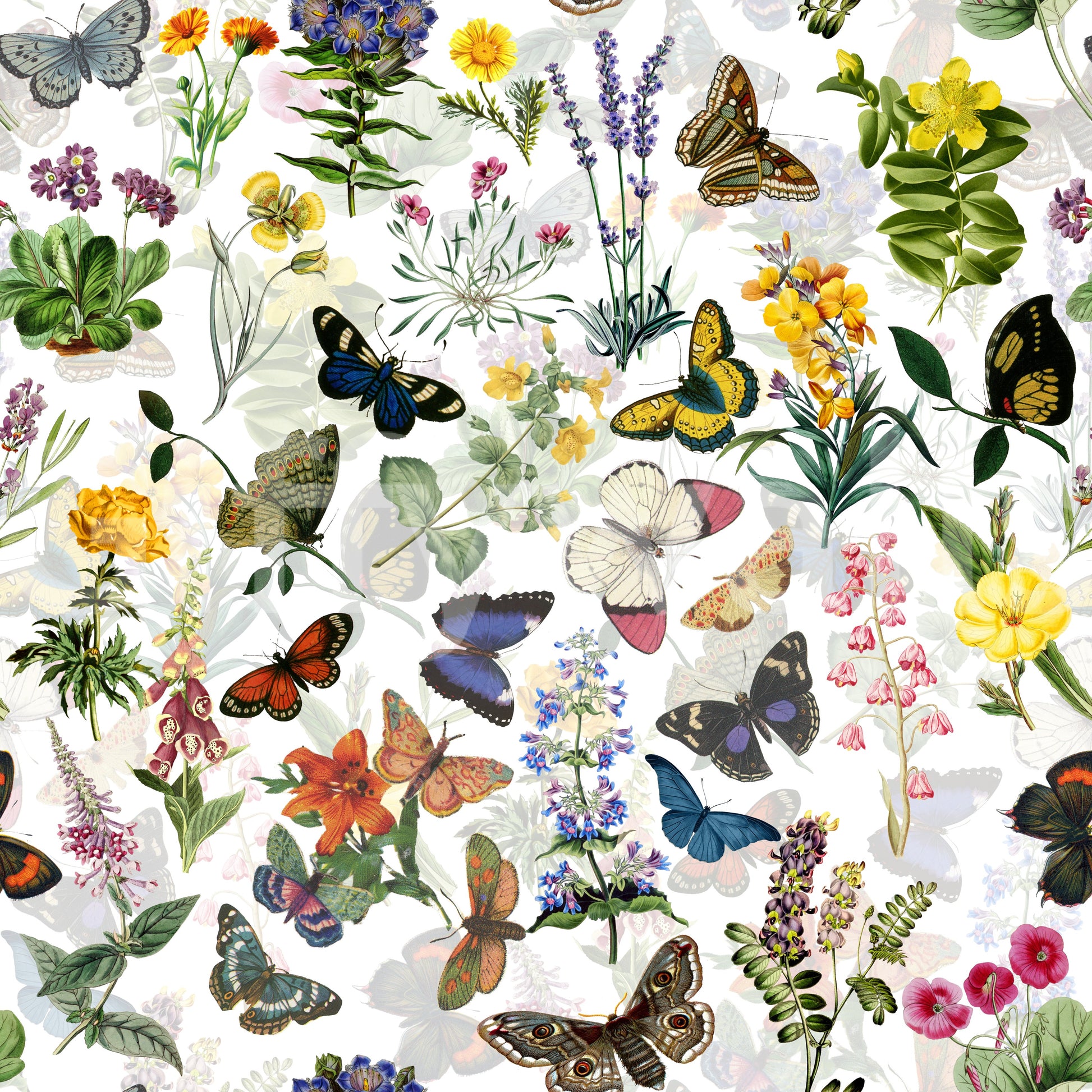 Invite nature indoors with this enchanting floral and butterfly wallpaper by Uta Naumann. Vivid colours bring life to the vintage-inspired botanical design. See detailed illustrations of various butterfly species and floral arrangements that pop against a crisp white background. It's a captivating design that suits a bedroom, living room, or dining area, providing an instant upgrade. This floral wallpaper for walls offers a stunning visual impact that enhances any interior style, adding elegance and charm effortlessly. Ideal for creating a peaceful and stylish home.