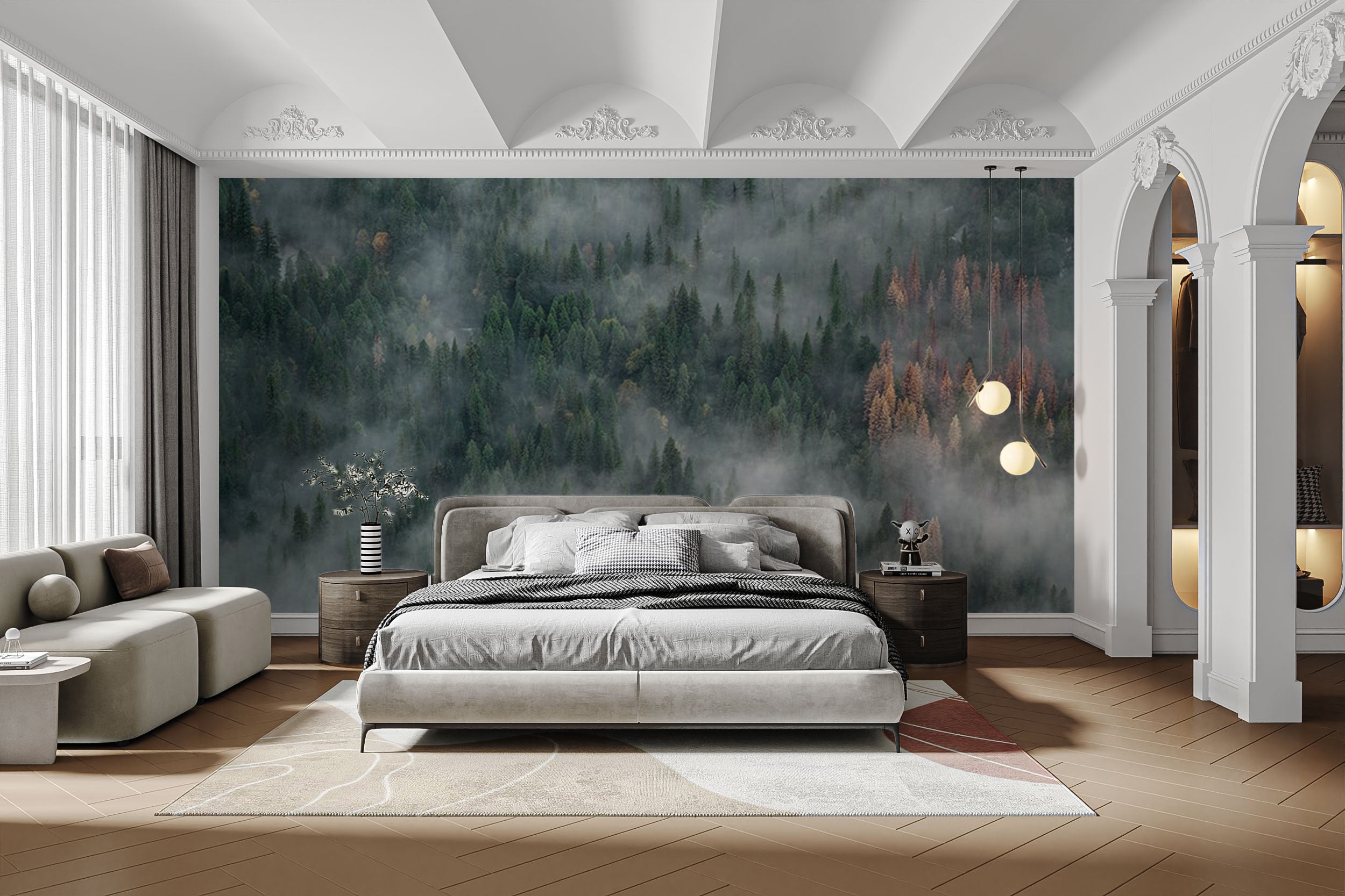Foggy Pine Forest Wallpaper Mural - Giffywalls