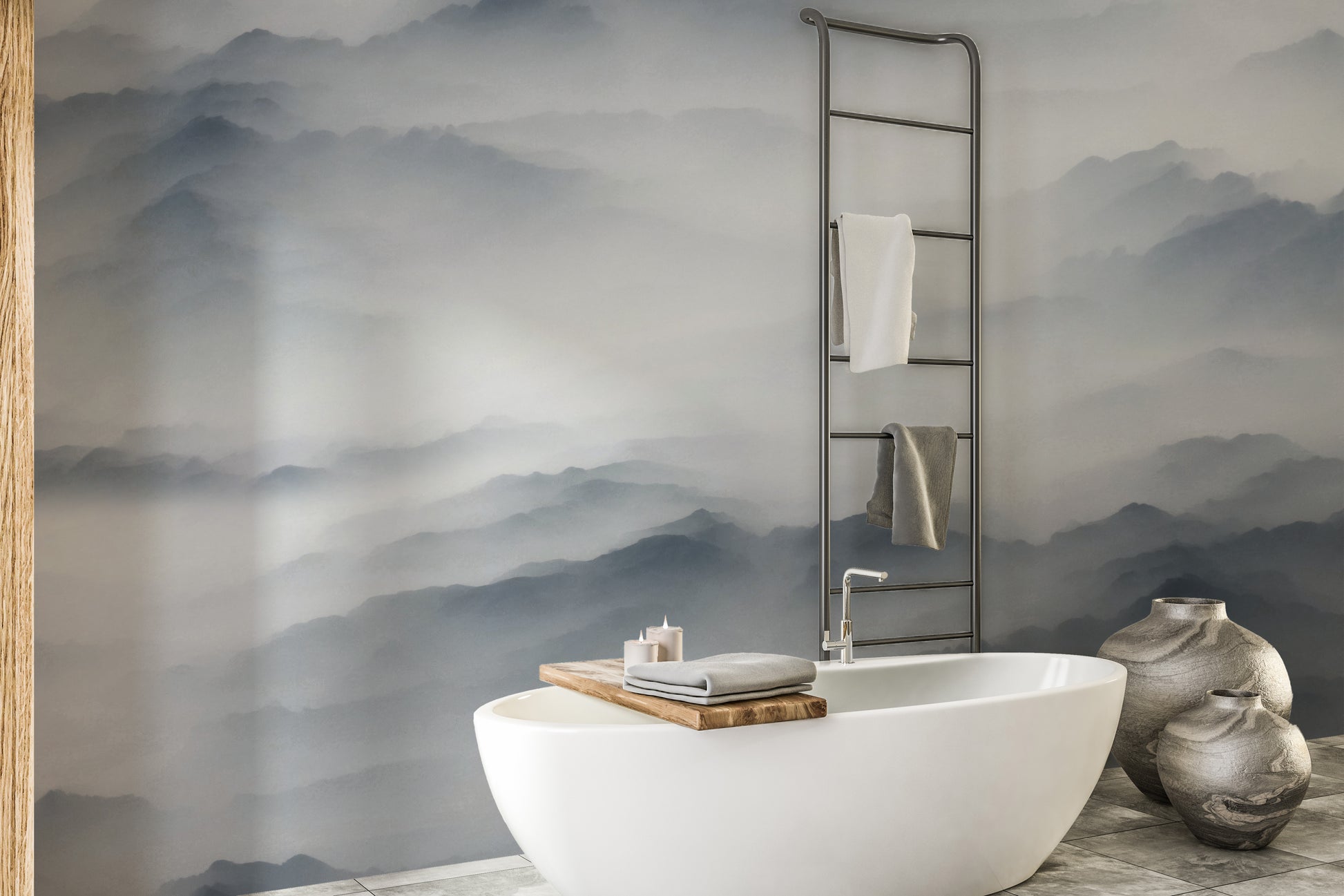 Bring the enchanting beauty of the outdoors into your bathroom with our majestic foggy horizon bathroom mural wallpaper. The marble-like texture of this wallpaper creates a sophisticated feel to your space, while the foggy horizon design adds a touch of mystery and intrigue. Your bathroom will turn into a haven where you can relax and unwind in a natural setting. The exquisite detailing and subdued tones of this wallpaper are the perfect complement to your modern bathroom decor.