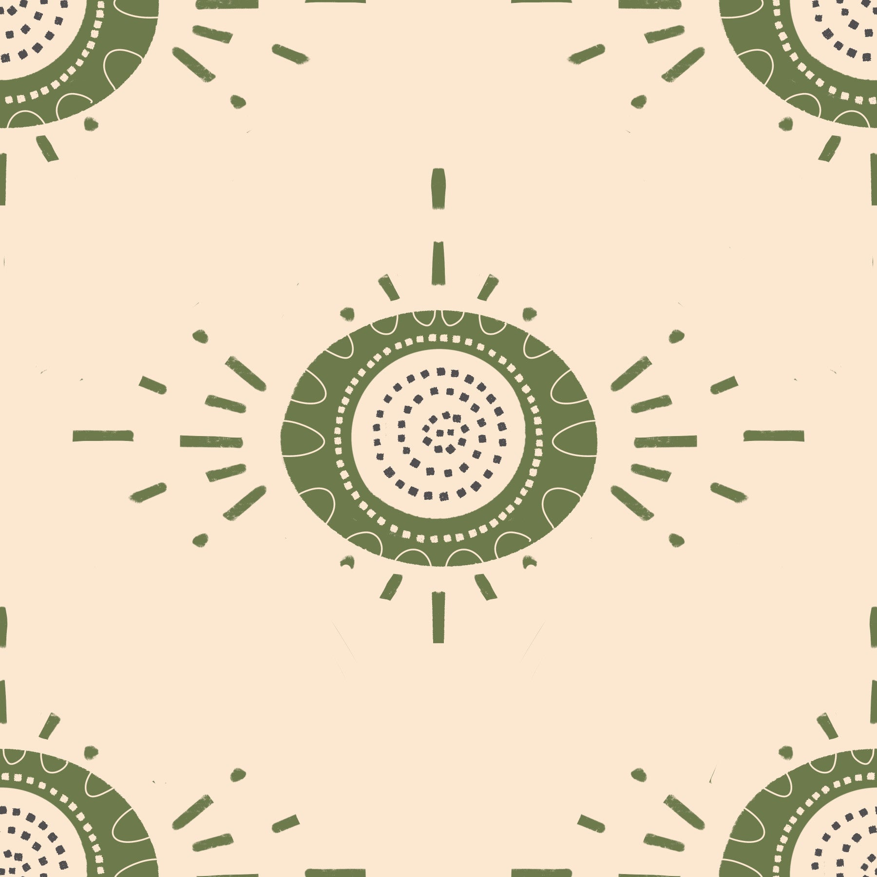 Folk Bloom Light Cream Olive Wallpaper with geometric floral patterns