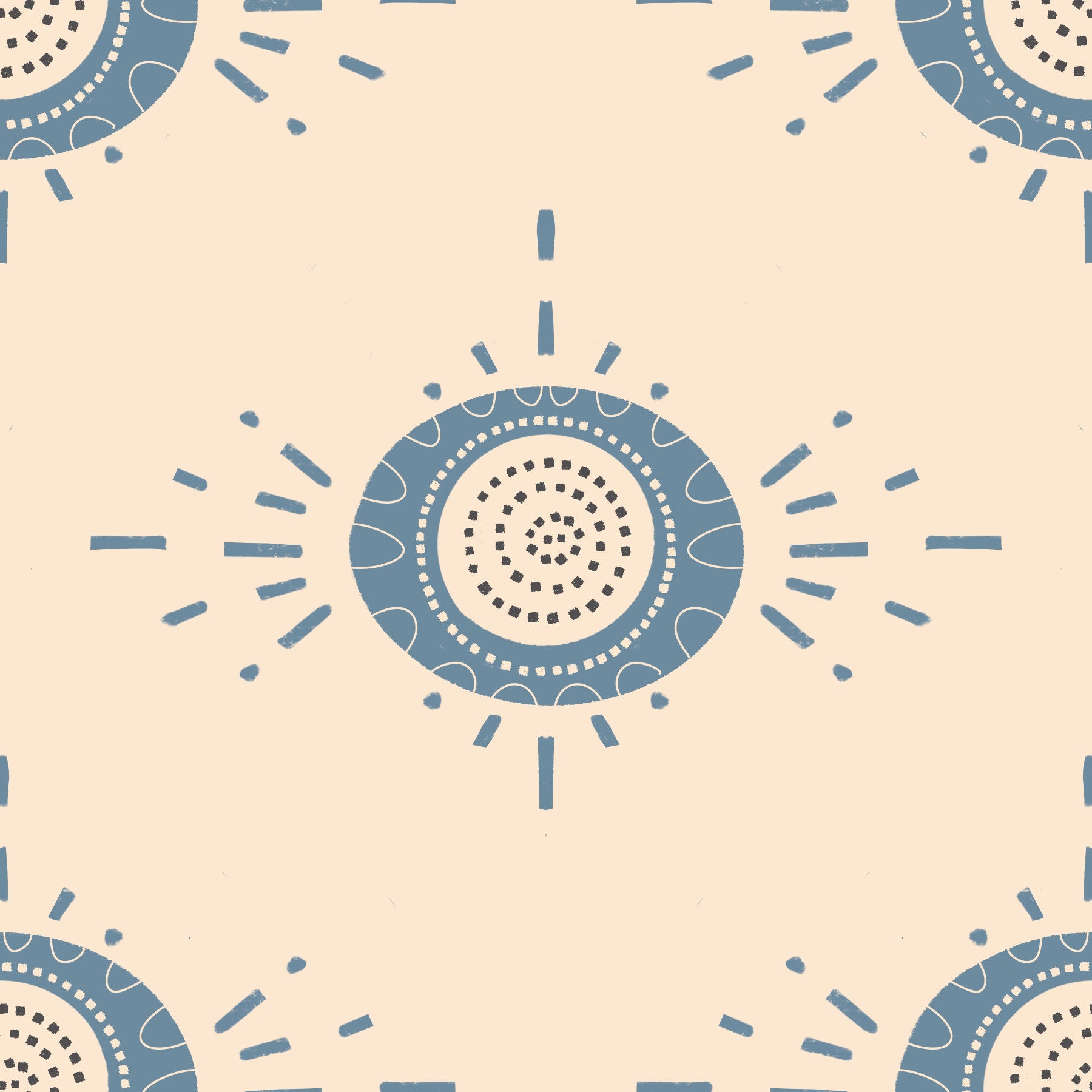 Folk Bloom Light Dusty Blue Cream Scandinavian Mid Mod Floral Wallpaper⁠