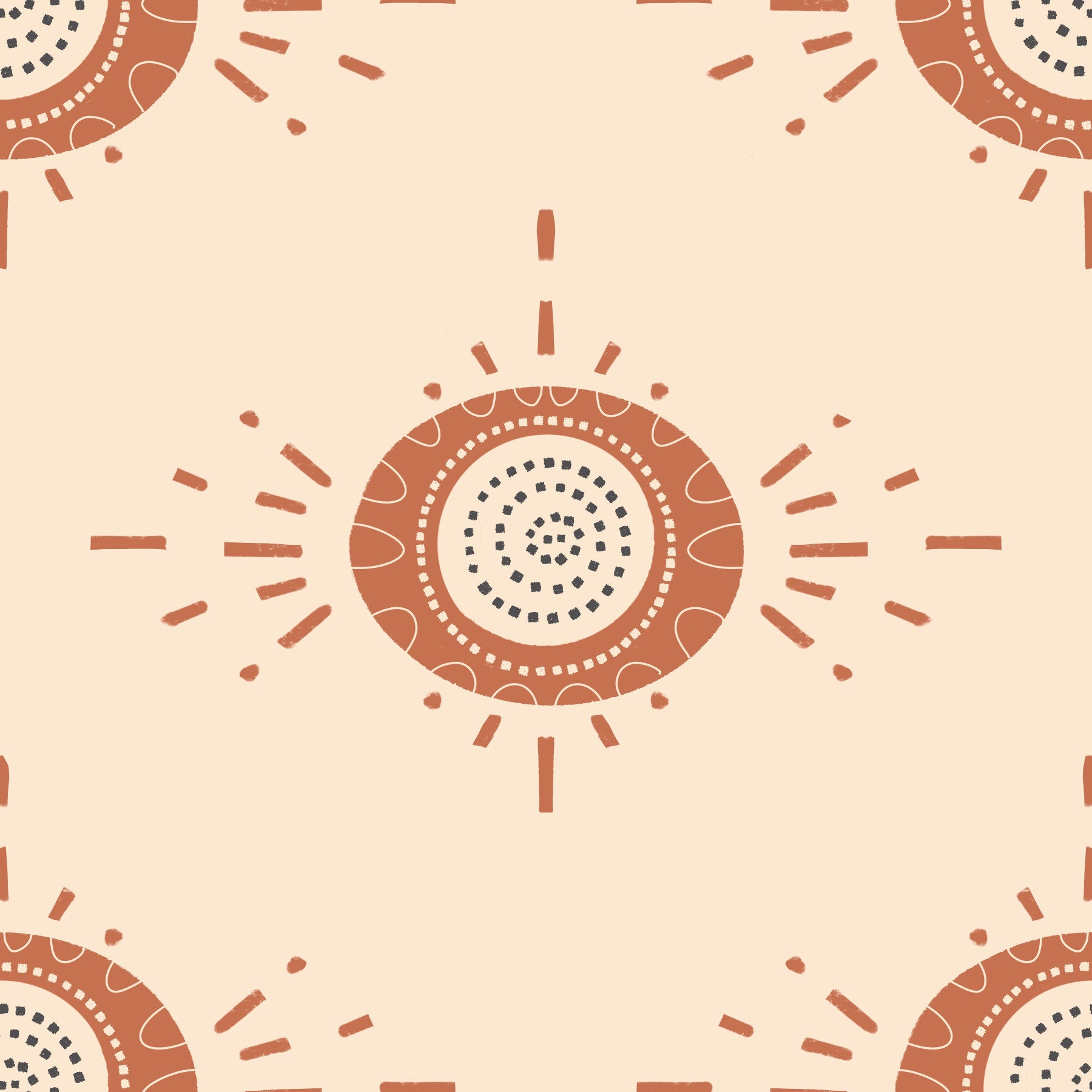 Evoke a sense of warmth and understated elegance with Folk Bloom a wallpaper design that seamlessly blends Scandinavian simplicity with mid-century modern charm and a touch of folk artistry. The light terracotta and cream palette creates a soothing backdrop, perfect for cultivating a calm and inviting atmosphere in any room. Abstract floral motifs, reminiscent of sunbursts, bloom across the design, their hand-drawn quality lending a touch of artisanal authenticity. This wallpaper's minimalist approach and harmonious color scheme make it a versatile choice, complementing a variety of interior styles from modern to bohemian. Embrace the beauty of simple forms and natural hues with this delightful design, bringing a breath of fresh air and a touch of whimsical sophistication to your space.