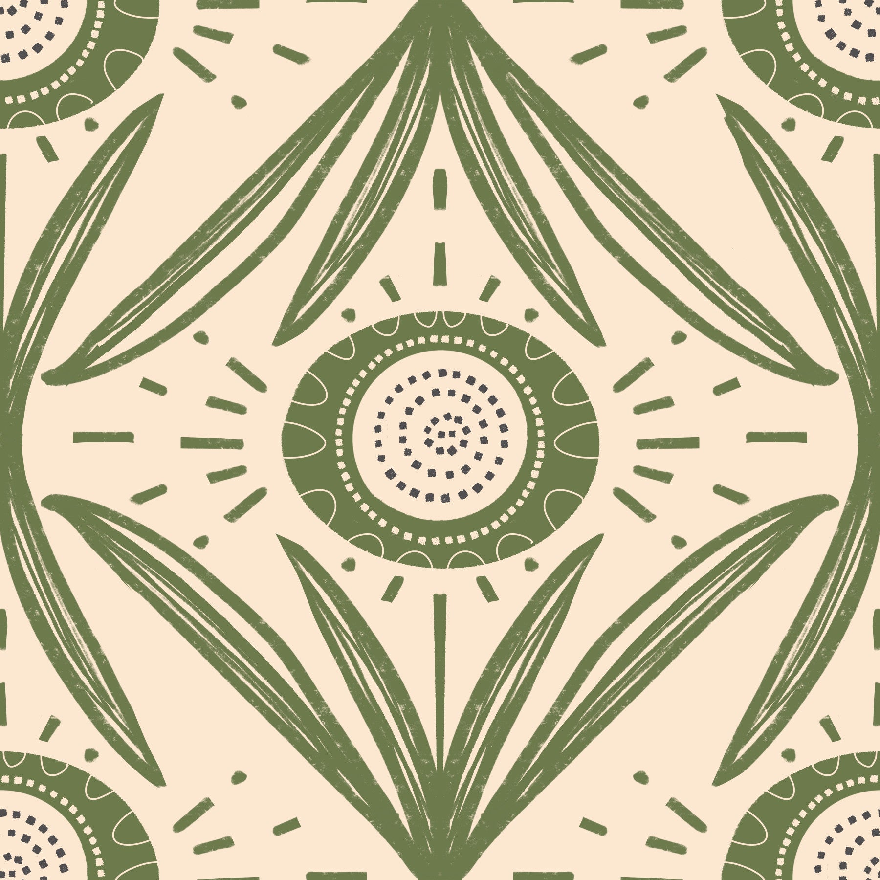 Embrace the rustic charm with 'Folk Bloom Radiance Olive Green,' a farmhouse floral wallpaper that exudes a sense of serene beauty. The hand-drawn style olive green botanical motifs, arranged in a symmetrical pattern, radiate a subtle radiance against the muted background. Circular focal points, reminiscent of blooming flowers, add a touch of folk art elegance. This wallpaper evokes a comforting, homespun feeling, perfect for creating a warm and inviting space. Its subdued color palette allows for seamless integration into various decor styles, bringing a touch of nature-inspired artistry to any room. The design provides an effortless blend of modern simplicity with traditional pastoral charm.