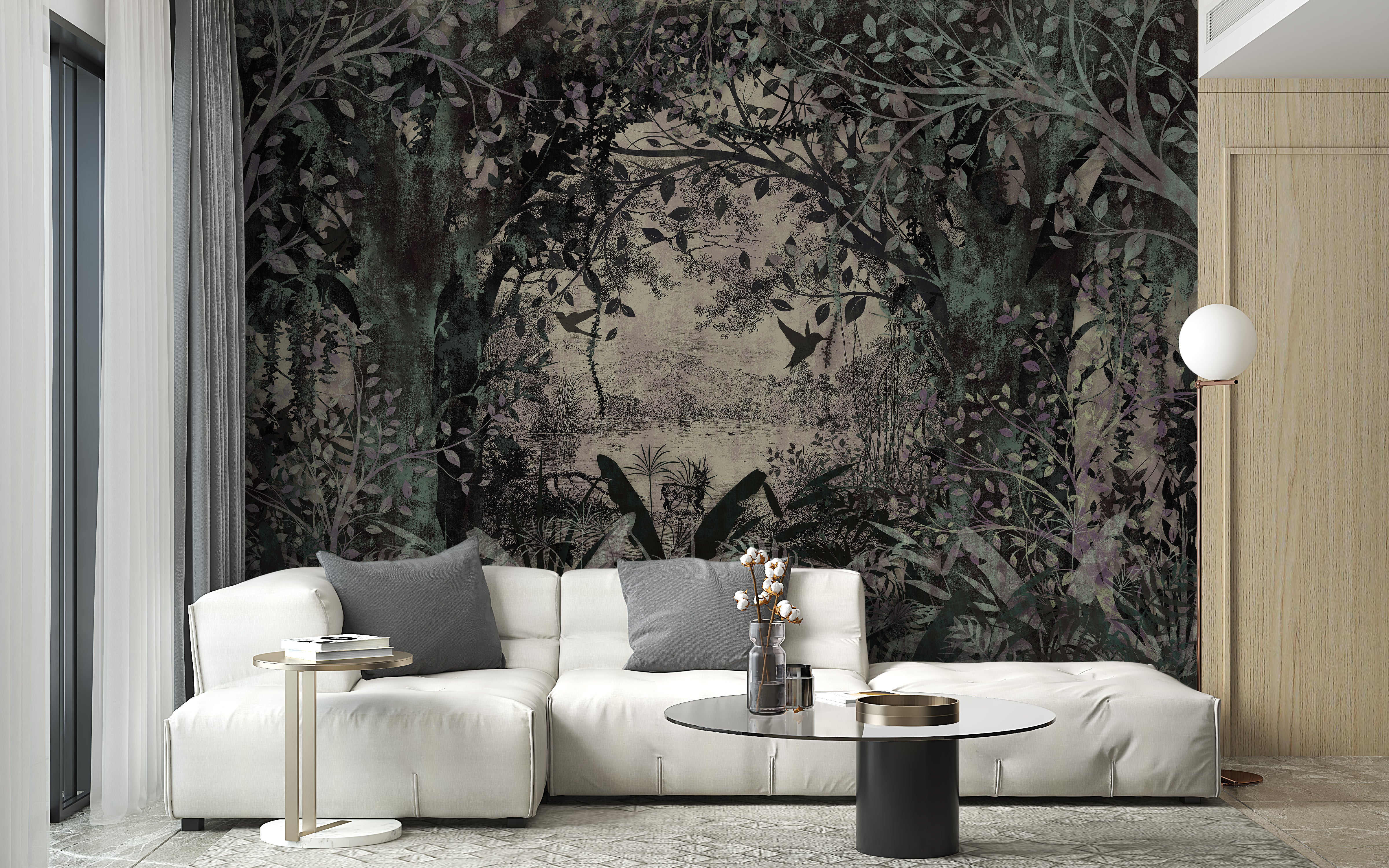 Dense forest with a dusky green Wallpaper Murals - Giffywalls