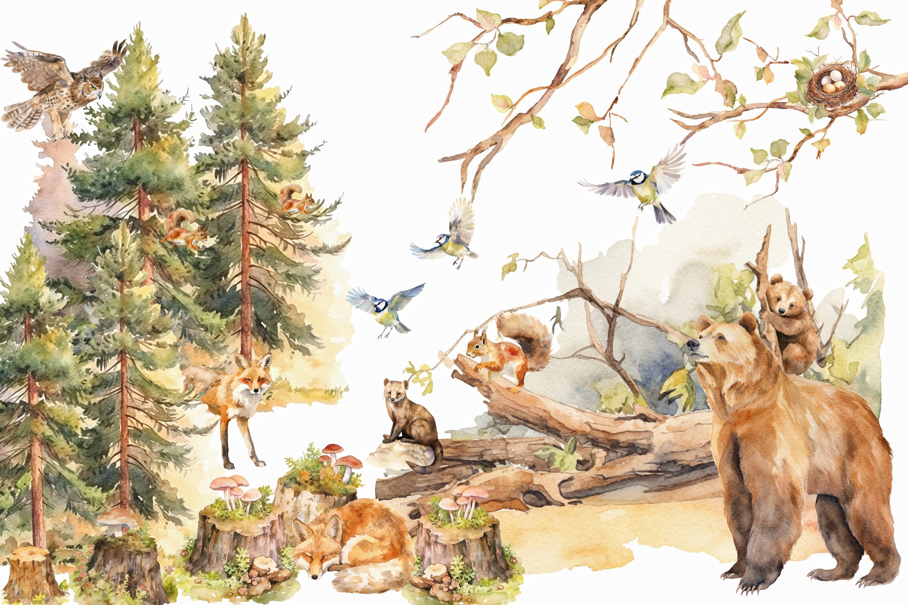 Forest Friends Watercolor Wall Mural