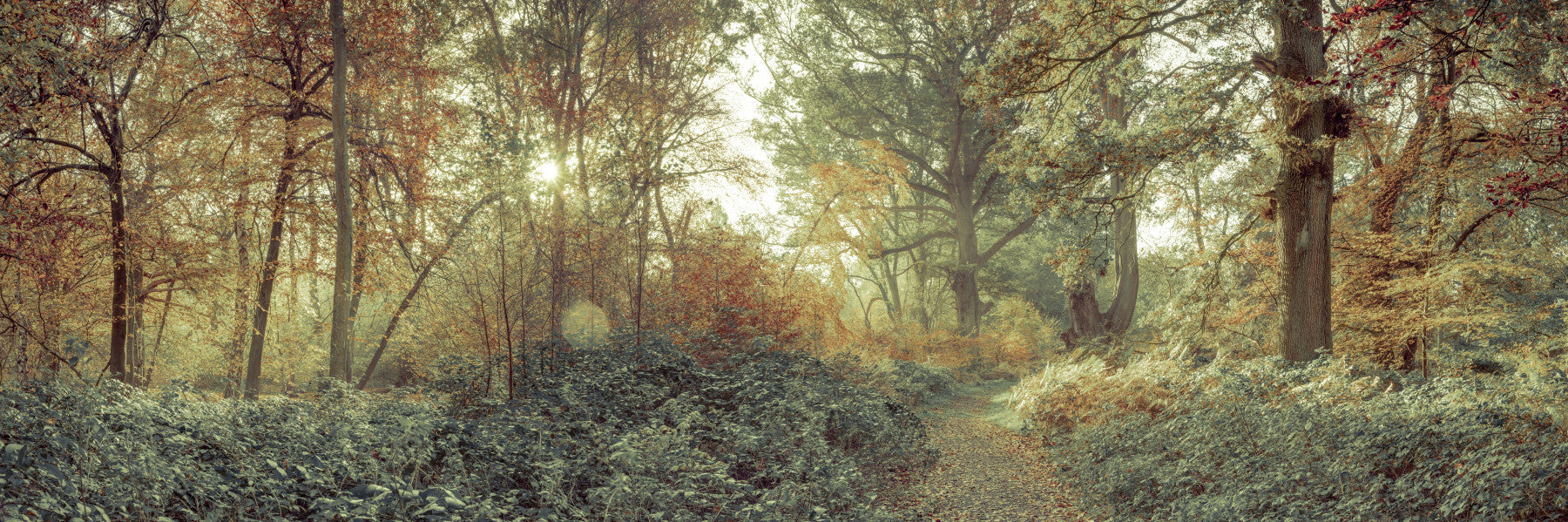 Transform any room with this enchanting forest scene. This wallpaper for walls captures the serene beauty of a woodland path bathed in soft, diffused sunlight. The design showcases a tranquil landscape featuring lush foliage, mature trees with leaves tinged with autumn colours, and a gentle path that invites exploration. The earthy colour palette of greens, browns, and muted oranges creates a calming and natural ambiance. Perfect for a living room, bedroom, or hallway, this wallpaper brings the tranquility of nature indoors. It works well in both contemporary and classic interiors, adding depth and a sense of peaceful escape.