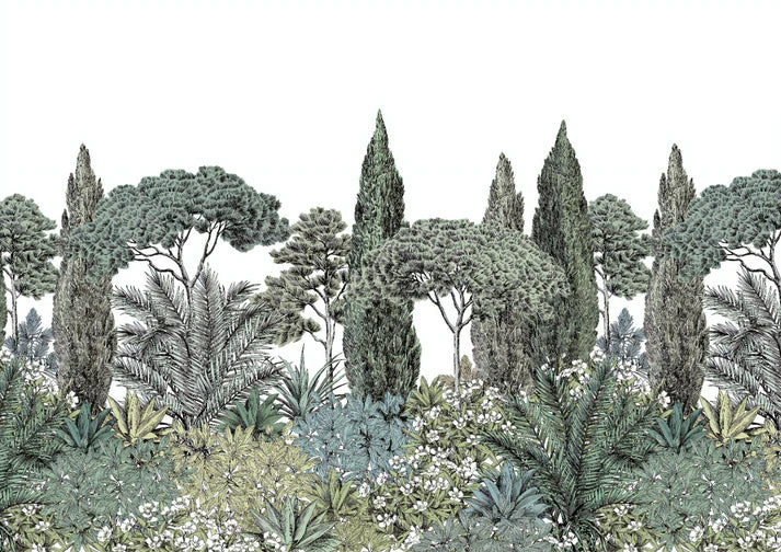 Forest-inspired garden wallpaper mural for tranquil spaces.