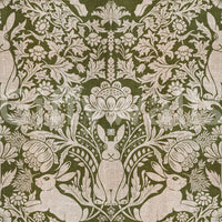 Immerse yourself in the enchanting allure of the "Forest Hare Tapestry" wallpaper. This design evokes a sense of timeless elegance, reminiscent of classic woven tapestries. A verdant, earthy green backdrop provides a soothing contrast to the intricate, stylized flora and fauna depicted in a delicate beige hue. Majestic hares are subtly integrated into the design, peering out from behind stylized leaves and blossoming lotus flowers. The overall effect is one of whimsical sophistication, bringing a touch of nature's serenity and old-world charm to your digital space. Perfect for adding a touch of rustic, understated luxury to your desktop or mobile device, the "Forest Hare Tapestry" creates a calm and inviting atmosphere. Let this wallpaper transport you to a tranquil forest glade, where nature's beauty unfolds in a harmonious and captivating symphony.
