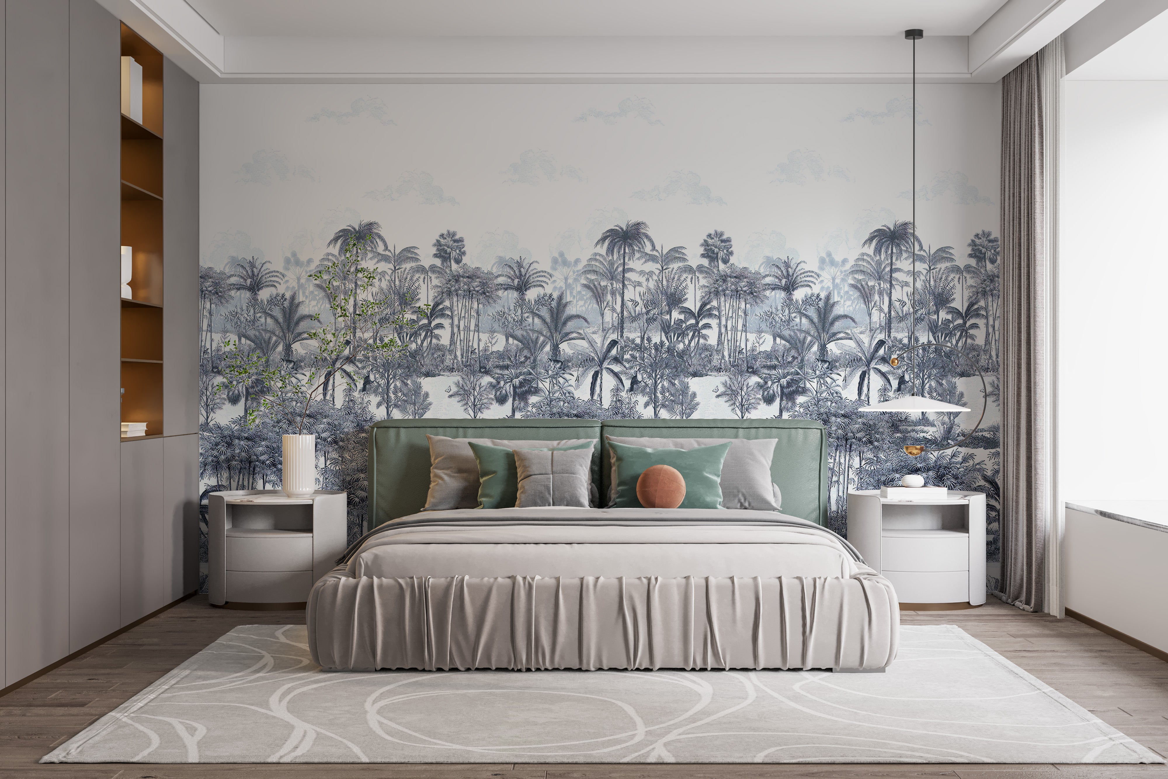 Nature-inspired blue palm trees wall mural