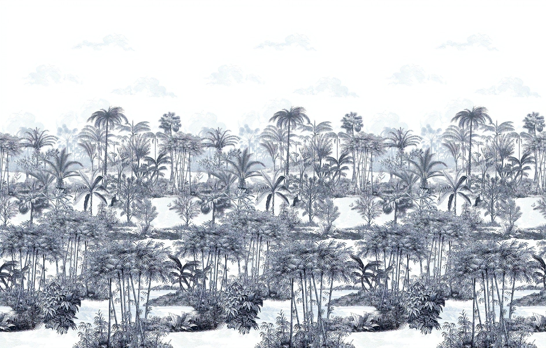 Serene blue palm trees wallpaper mural design