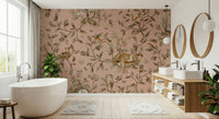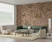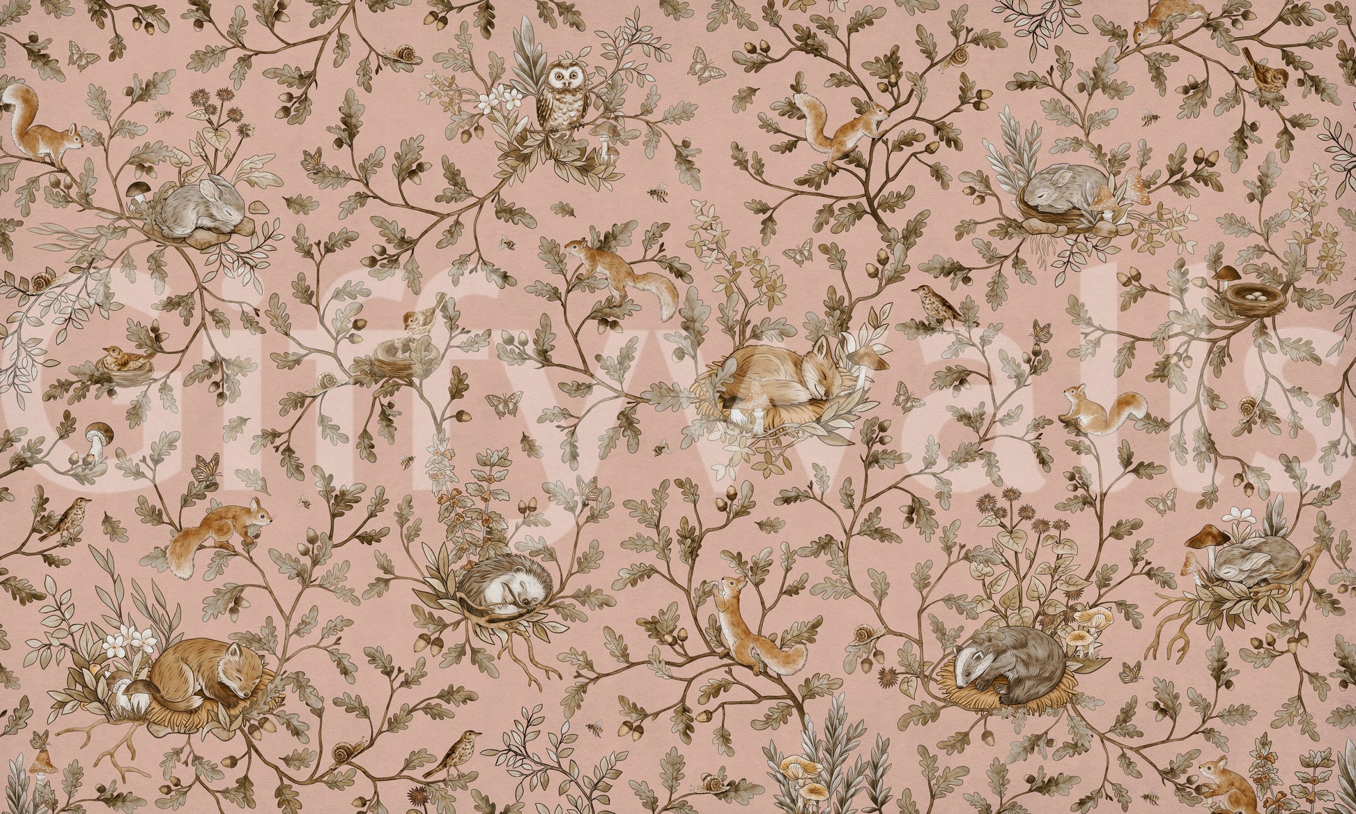 Invite serenity into your home with this calming forest-inspired wallpaper. It features detailed illustrations of sleeping woodland animals on a gentle, pale pink backdrop. This wallpaper for walls evokes a sense of peace and invites a tranquil atmosphere into any room. The charming design works well in a kids room, bedroom, or nursery. It complements a cottagecore or Scandinavian interior style. Enjoy a soft, muted colour palette that blends harmoniously with varied decor.