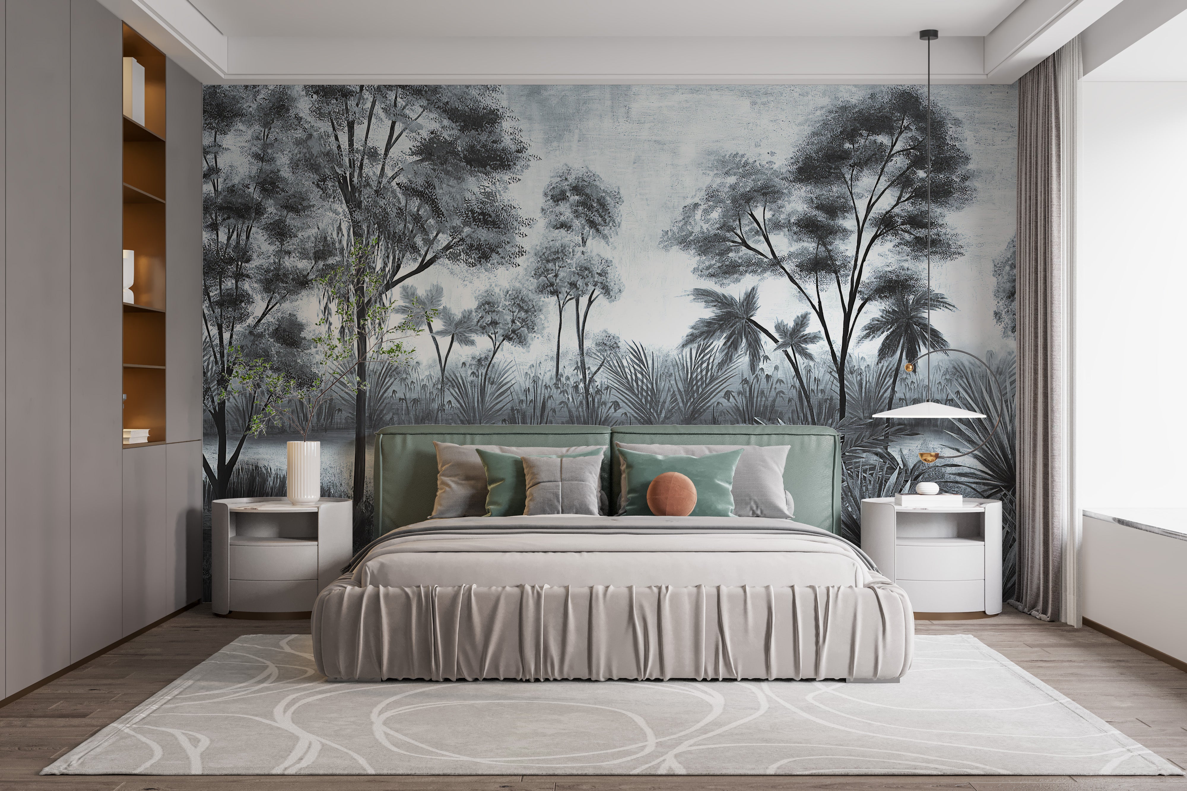 Subtle gloomy tree tones wall mural art