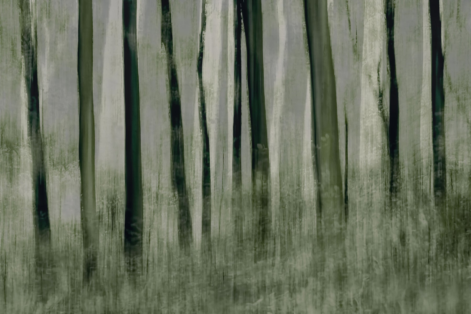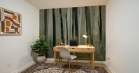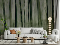 Bring the tranquillity of an ancient forest into your home with this unique wallpaper for walls. It features tall trees in muted green and grey tones, creating a serene and calming atmosphere. The design uses a brushstroke effect to give the image an artistic feel. It's perfect for bedrooms, living rooms, or any space where you seek a peaceful escape. The soft colour palette complements minimalist, Scandinavian, or rustic interiors.