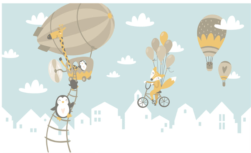 Fox and Penguin Hot Air Balloons Wallpaper Murals - Giffywalls