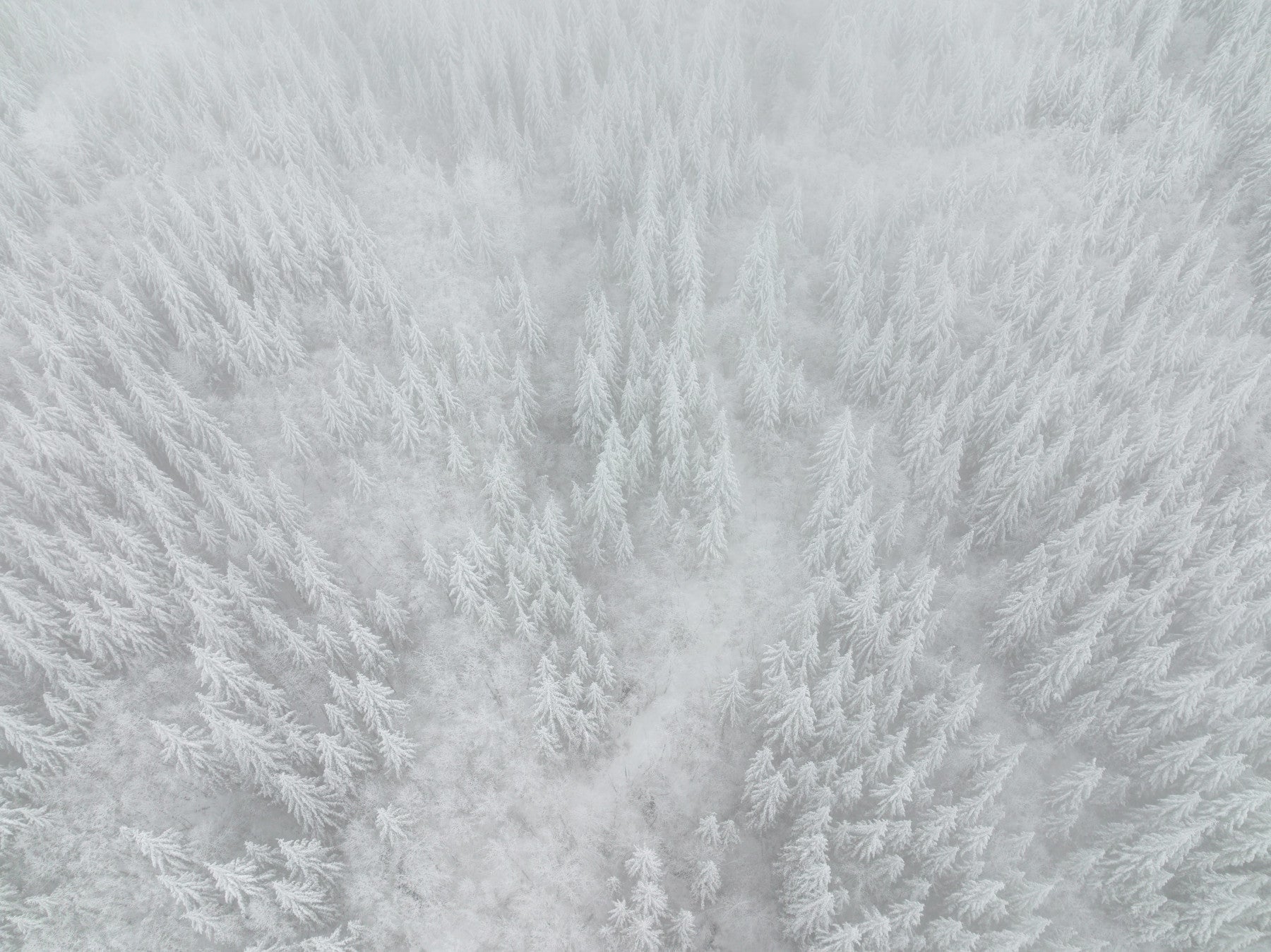 Stunning snowy pines wall covering, ethereal white tree tops, beautiful Frosted Canopy.