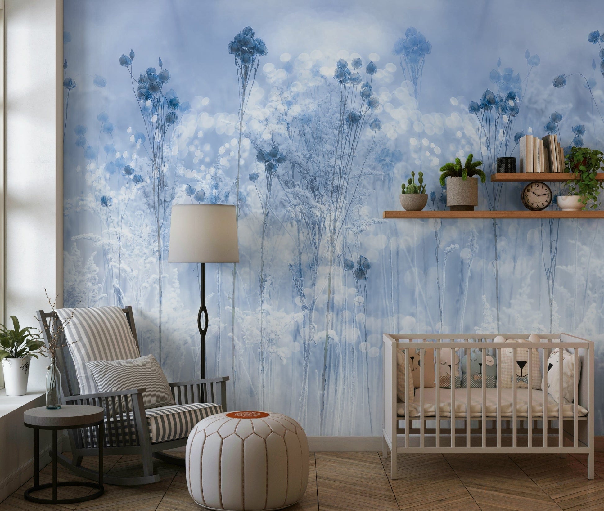 Bring a dreamy ambiance into any room with this beautiful wallpaper for walls. The gentle, frost-kissed botanical scene in pale blues and whites invites serenity. This elegant design makes a statement in bedrooms or bathrooms, adding a peaceful atmosphere. Imagine waking up to this calming landscape every morning. It works well in any minimalist or Scandinavian-inspired interior, creating a soothing, stylish retreat. The blurred effects amplify the soft aesthetic, giving a dreamy quality.