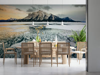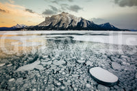 Witness nature's spectacle with this frozen lake wallpaper. The methane bubbles, trapped beneath the ice, create a fascinating pattern against the backdrop of snow-capped mountains. Hues of blue, white, and gold merge in a serene vista. The crisp, cool tones bring a breath of fresh air to any room. Use this wallpaper for walls in your living room or office and let the unique design elevate your interiors. This wallpaper offers a calming touch to busy spaces.