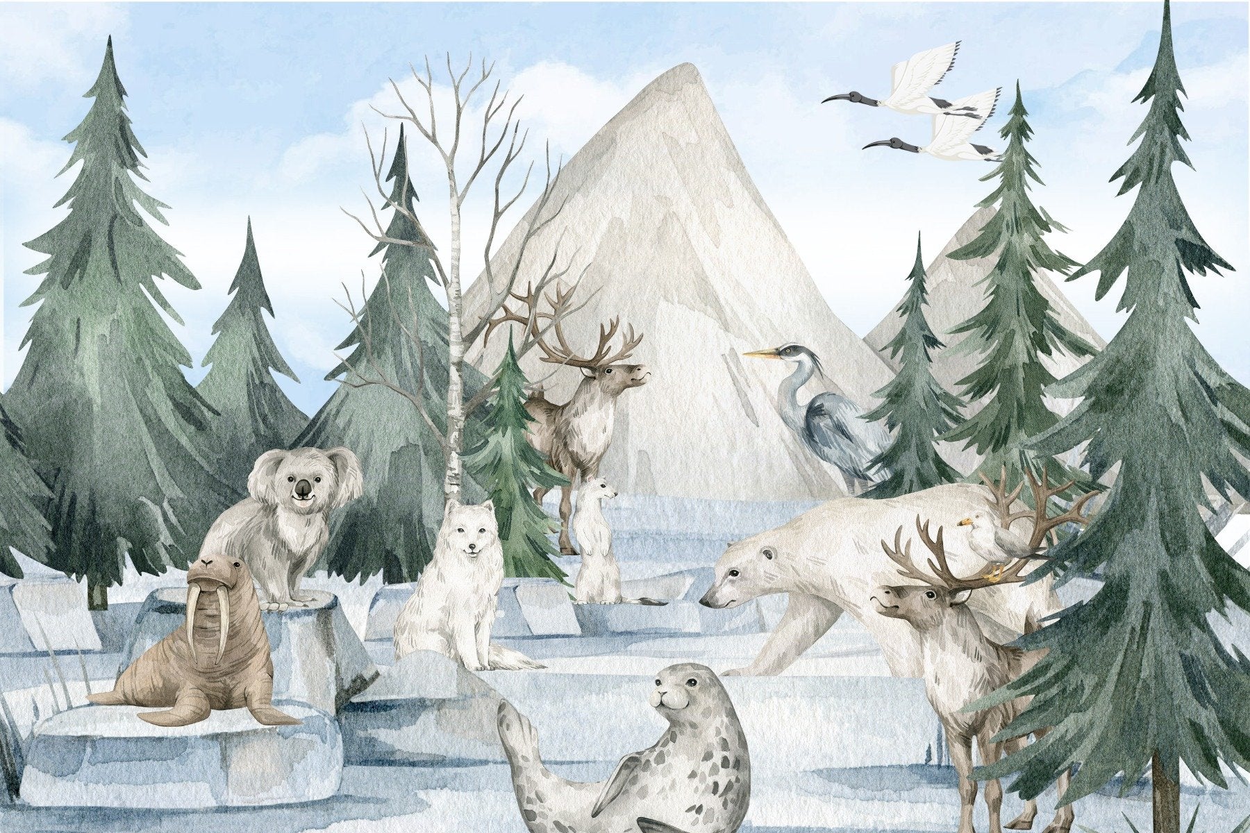 Frozen Frontier Majestic Wildlife Mural self-adhesive wallpaper