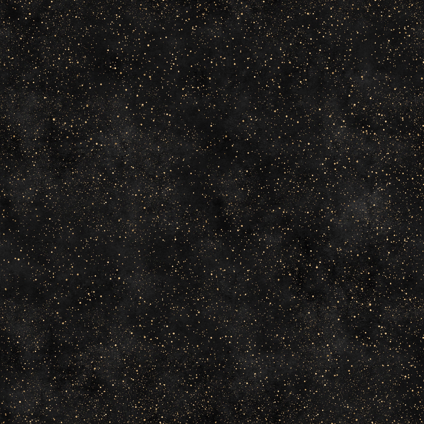 Galactic Star Field - Charcoal brings a calm, nighttime mood with a deep charcoal-black background and a soft, cloudy texture, sprinkled with tiny golden stars. The pattern feels like a quiet galaxy—subtle from afar, detailed up close. Use this wallpaper as a full wall mural in a bedroom for cosy, dark-academia vibes, or in a bathroom, home office, or reading nook for a soothing backdrop. A great fit for modern interior design with moody colours and metallic accents.