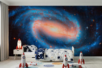 Journey to the stars with this stunning galaxy dream wallpaper for walls. Swirls of deep blues and radiant oranges create a mesmerising cosmic vista, guaranteed to add depth and drama to any room. Enliven your walls with the beauty of the universe and invite a sense of wonder and exploration into your home. This design works wonderfully in bedrooms, creating a tranquil yet inspiring atmosphere. The rich colour palette complements modern and contemporary spaces alike, bringing a touch of the infinite to your daily life. Enhance your home with this bold and breathtaking wall covering.