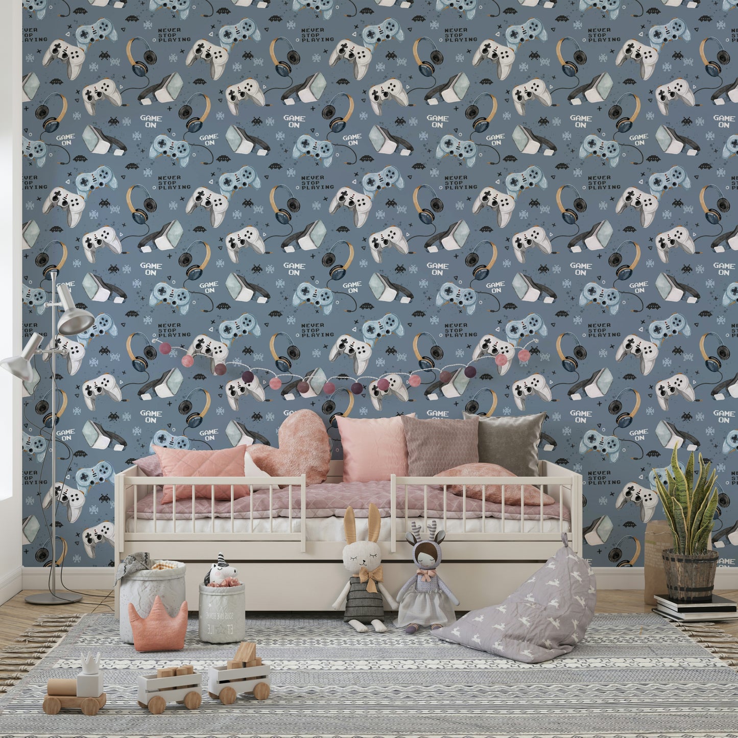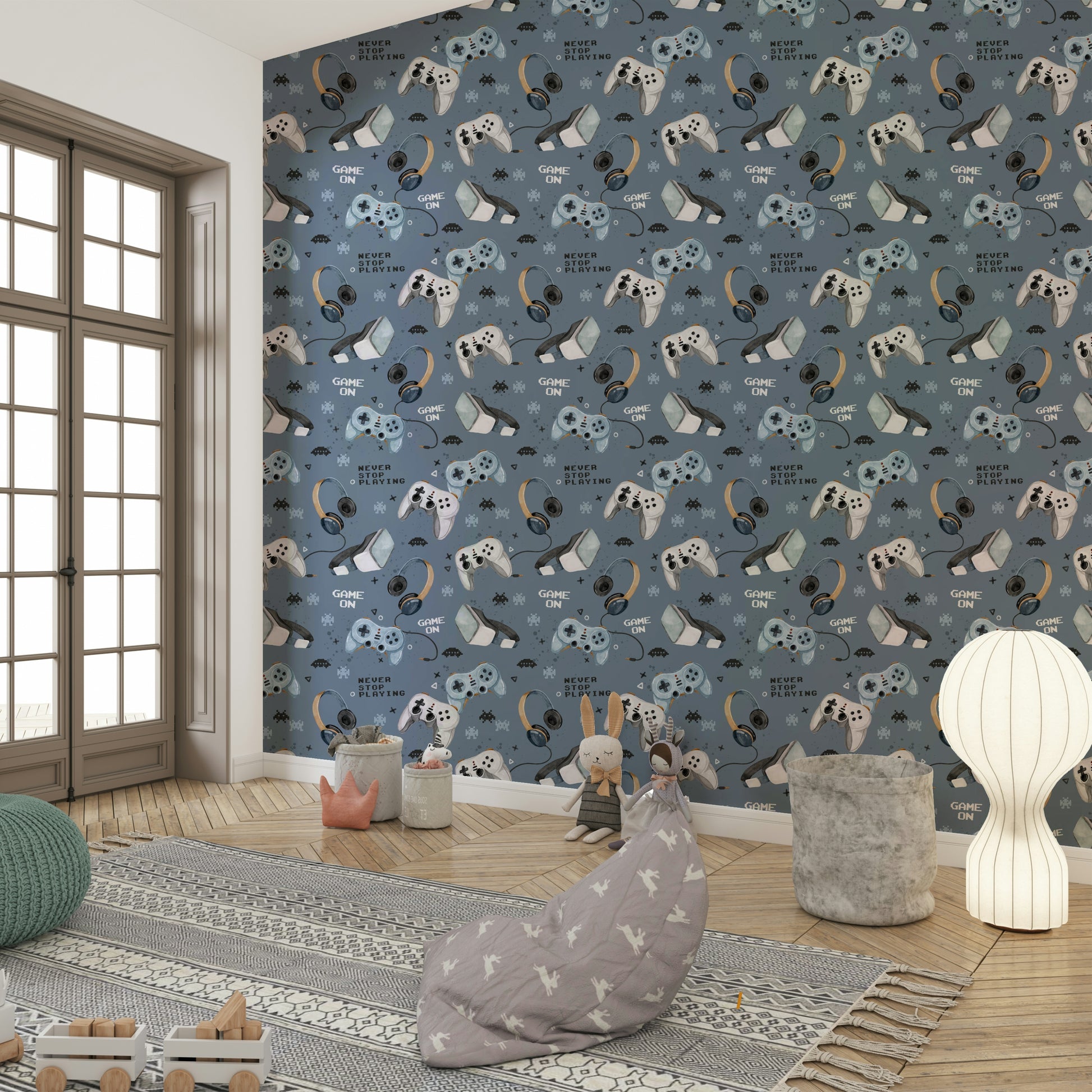 Kids room gaming blue wall mural