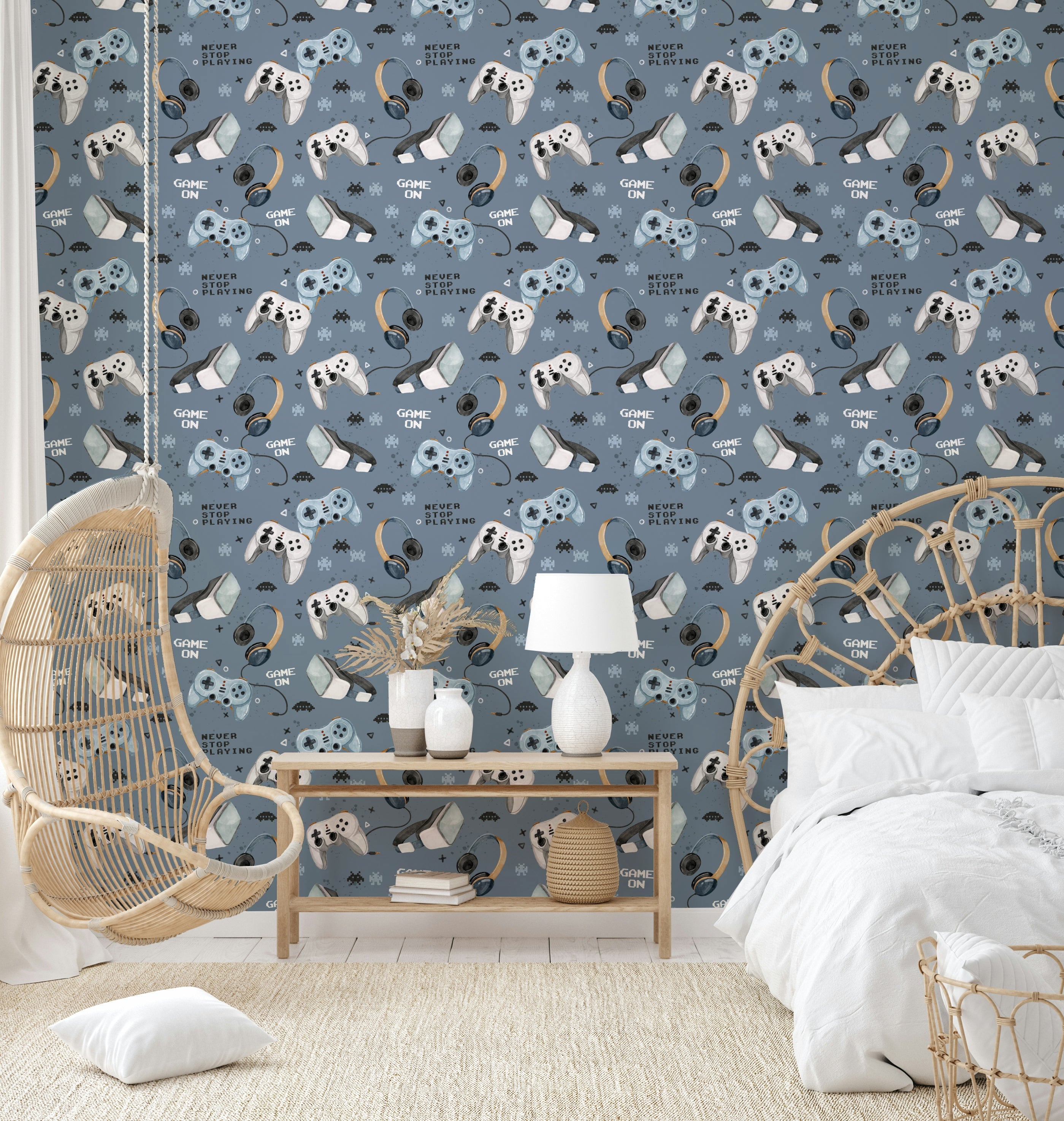 Playful blue gamer wallpaper idea