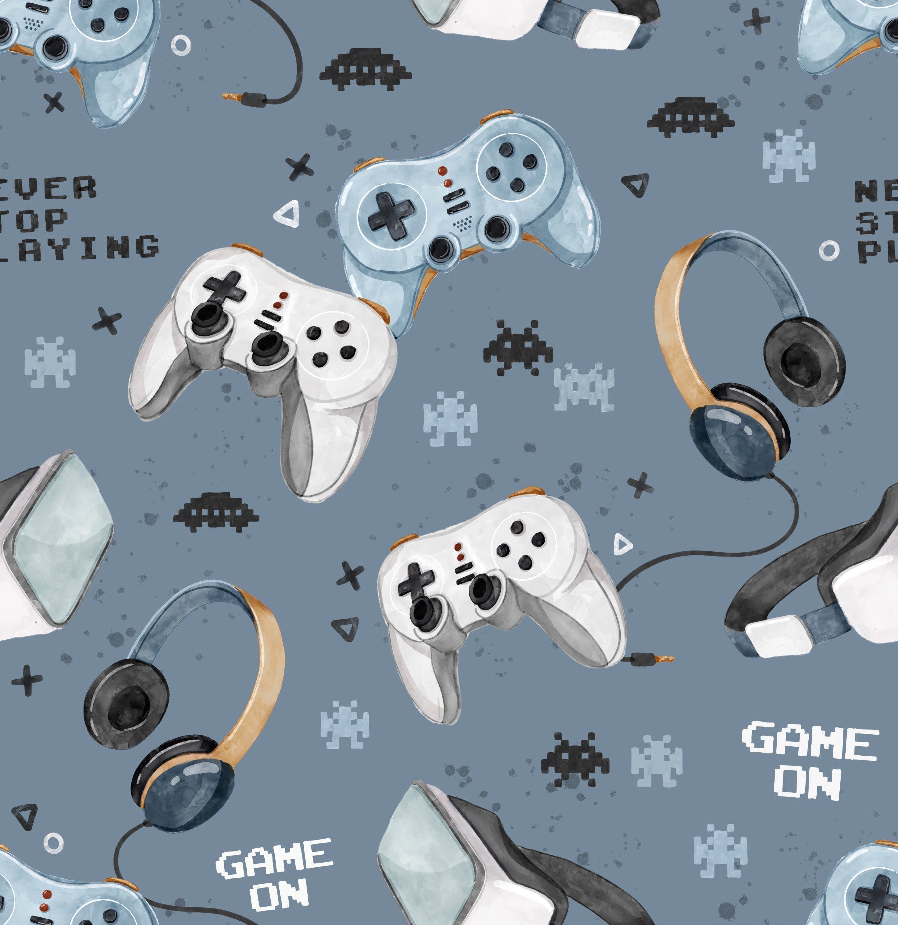 Immerse yourself in the vibrant world of 'Game On - blue'! This stunning wallpaper features a captivating watercolor design of retro game controllers, sleek headsets, and pixelated space invaders, all set against a soothing blue backdrop. The playful yet sophisticated aesthetic blends nostalgic gaming elements with a modern, artistic touch. 'Game On' messages in pixel art add a fun, retro vibe, creating a dynamic and energetic feel perfect for gamers and design enthusiasts alike. Prepare to level up your desktop with this stylish and engaging wallpaper.