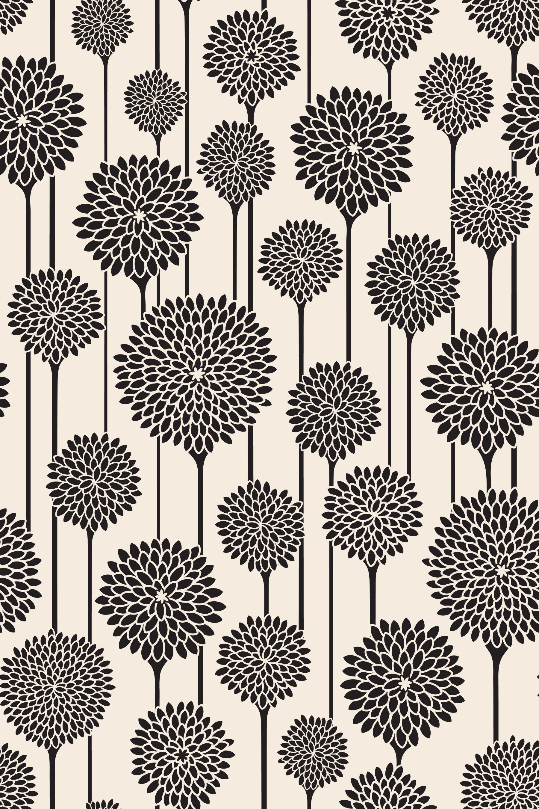 Step back in time with this Garden Beauties wallpaper, a delightful blend of vintage cottagecore charm and Mid-Century Modern Scandi simplicity. This design features stylized floral blooms, reminiscent of botanical illustrations, rendered in a striking classic charcoal black and warm white palette. Each big bloom is meticulously detailed with clean lines and a bold, graphic approach, while the floral stems suggest a subtle stripe. Whether you're looking to add a touch of vintage flair or a Scandi-chic vibe, "Garden Beauties" is the perfect choice for creating a stylish and welcoming space. It's a botanical blueprint for a beautiful home, where vintage meets modern in a delightful dance of design. This pattern design is also available in Other Colourways too! Original wallpaper pattern design by Jackie Tahara of UnBlink Studio.