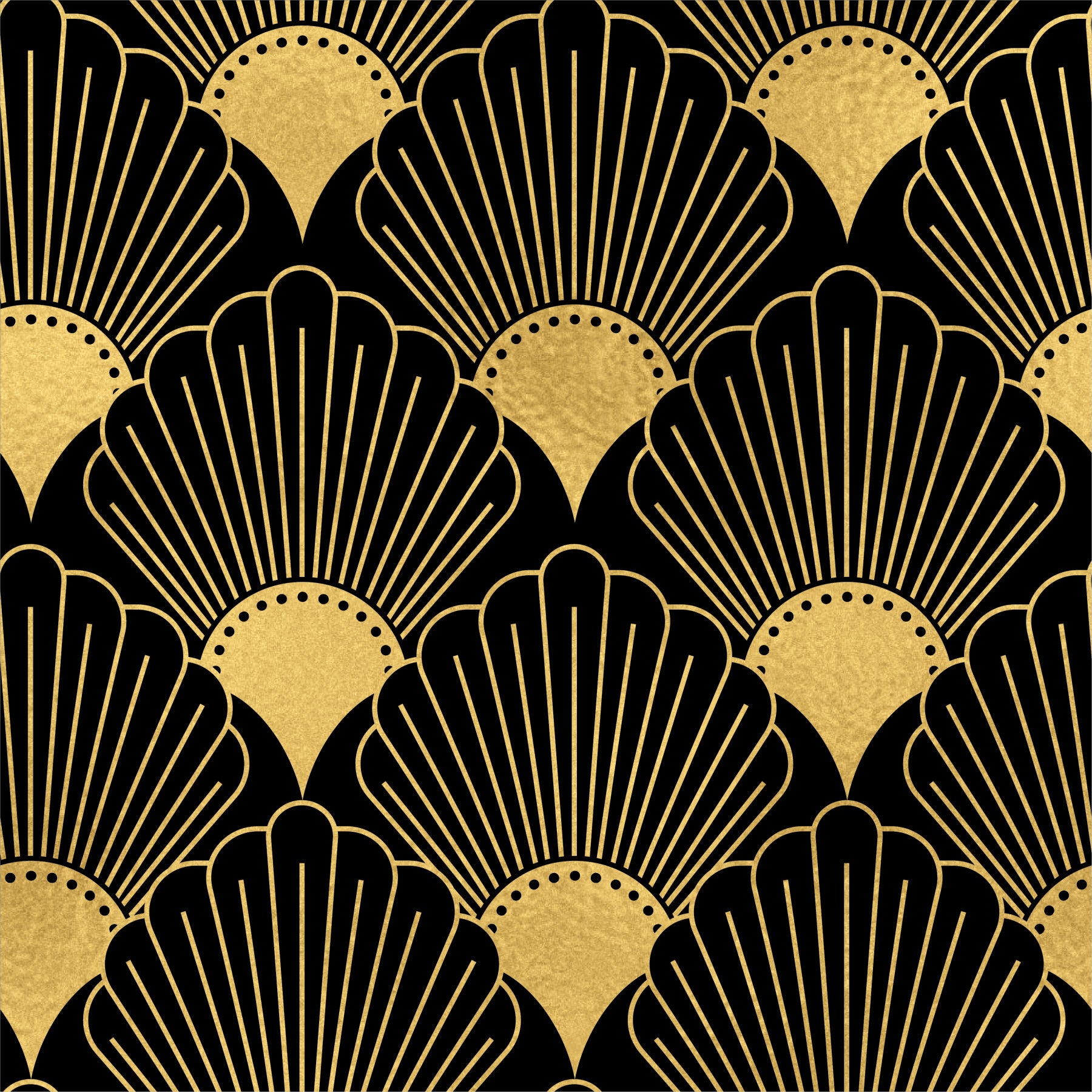 Transform any room with this stunning Art Deco-inspired wallpaper for walls. The striking geometric design features elegant gold details against a contrasting black background. Its fan-like pattern creates a glamorous atmosphere, making it perfect for living rooms, dining rooms, or even bedrooms. The bold pattern complements both modern and classic interiors, adding a touch of vintage luxury and character to any space.