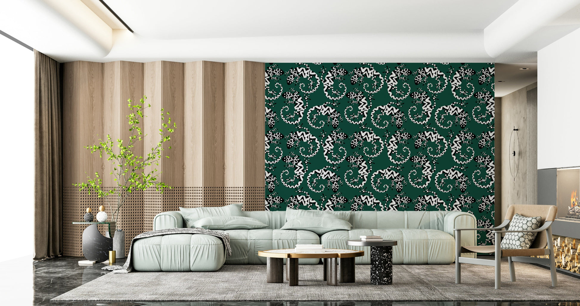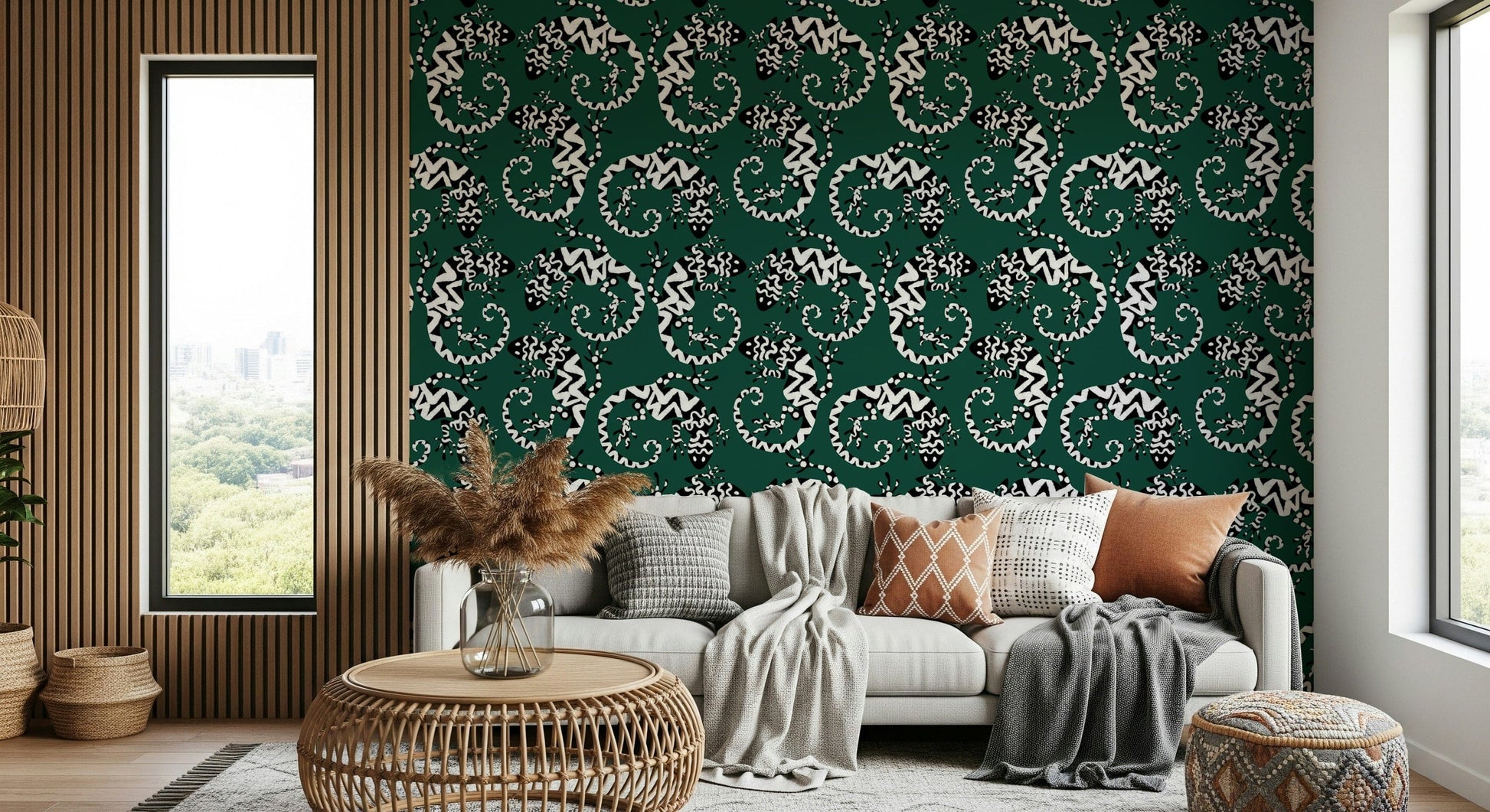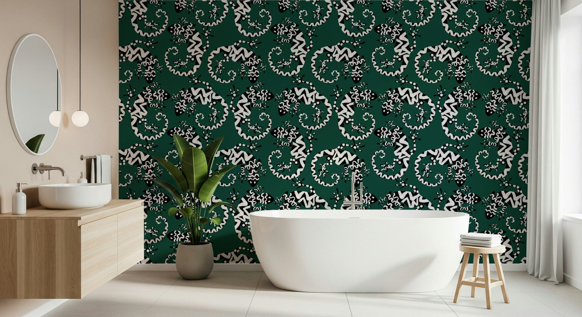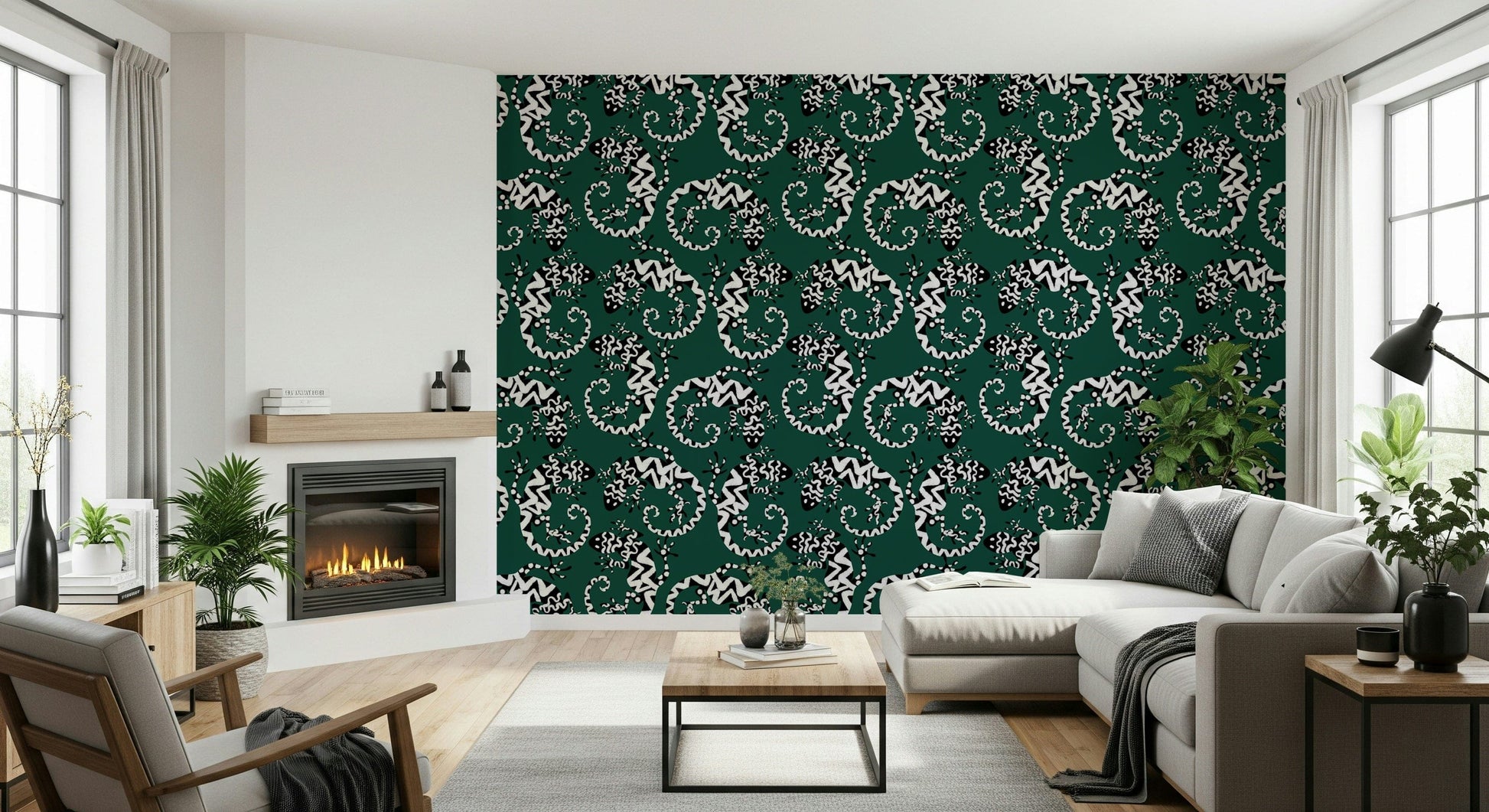 Transform any room with this striking gecko-inspired wallpaper for walls. The graphic black and white pattern against a deep green background brings a touch of exotic flair. The stylized lizards create a lively, repeating motif that is both modern and timeless. Ideal for adding personality to living rooms, hallways, or even bathrooms, this design works particularly well in spaces seeking a touch of whimsy. It adds visual interest without overwhelming the space, complementing both minimalist and maximalist interior styles. The pattern's bold contrast enhances the sense of depth, making smaller rooms feel more expansive.