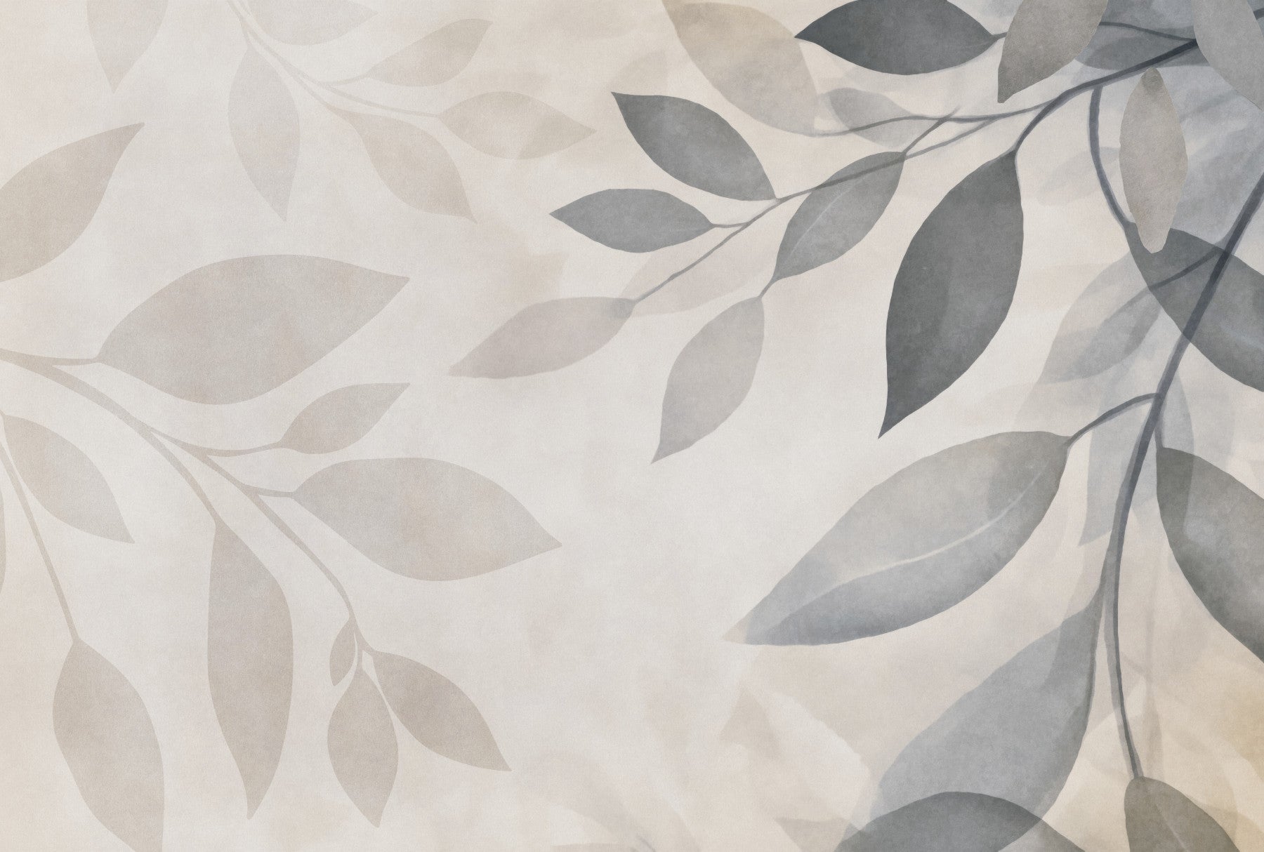 Serene wallpaper that exemplifies the art of simplicity and the beauty of nature. This minimalistic masterpiece showcases the delicate and soothing allure of neutral colored watercolor leaves, creating a sense of tranquility and harmony. Grey and beige leaves are the sole protagonists in this mural and they exude a sense of organic charm and serenity that can transform any space into a natural sanctuary. The neutral enhances the sense of calm and connection with the outdoors and brings a touch of nature indoors, making it ideal for spaces where relaxation and tranquility are desired. Perfect for both residential and commercial spaces, as it adds a subtle touch of calming botany. Whether it graces the walls of a modern home, a yoga studio, spa, hotel room or an eco-conscious cafe, this design invites to embrace the beauty of simplicity and the therapeutic presence of nature