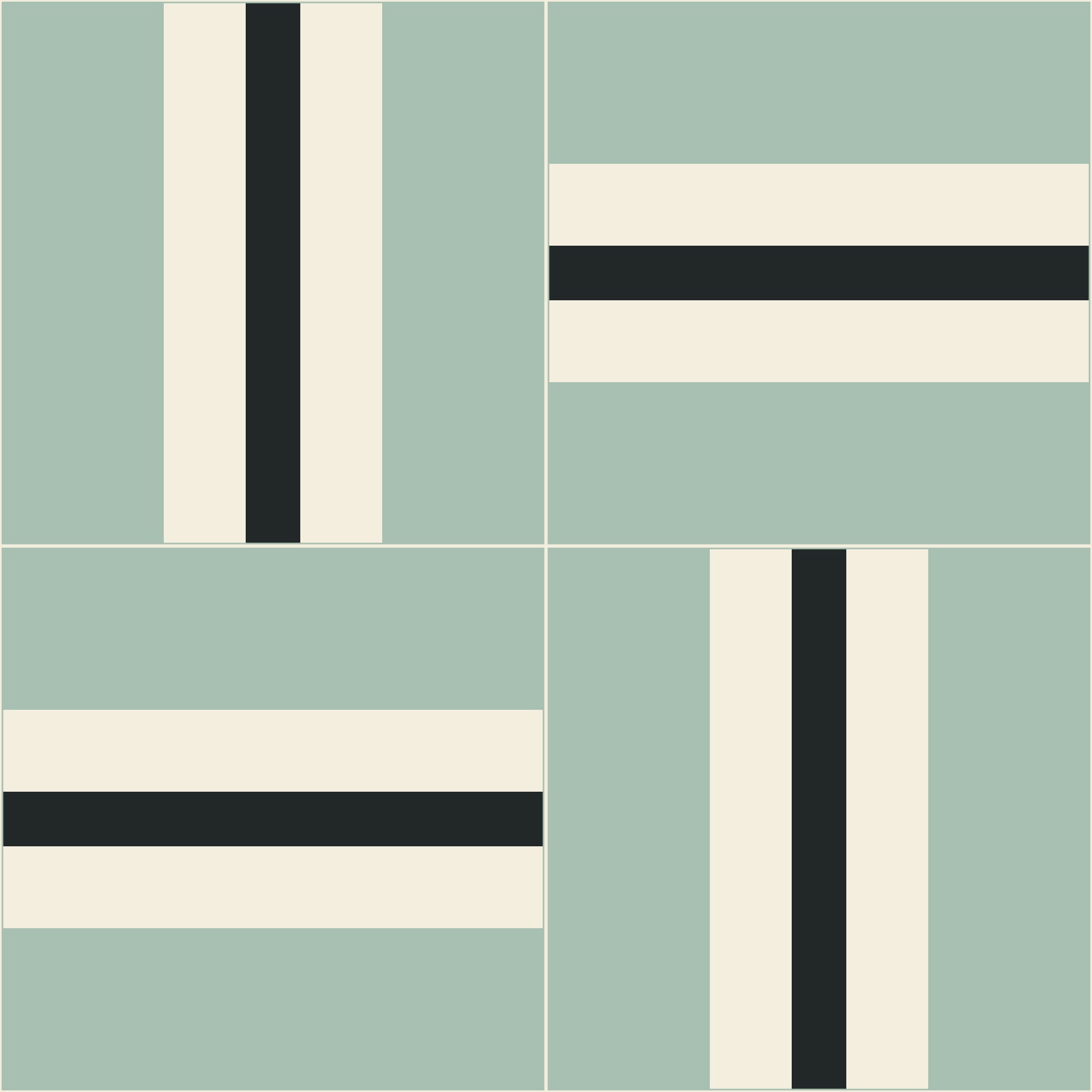 Geometric 05 is a minimalist wallpaper design featuring a sophisticated interplay of muted sage green, creamy off-white, and deep charcoal black. Clean lines and bold rectangular shapes create a calming yet visually interesting pattern. The repeating motif of vertical and horizontal bands provides a sense of order and balance, ideal for creating a serene and contemporary atmosphere on your desktop or mobile device. The subtle color palette lends itself to a variety of interior styles, adding a touch of understated elegance to your digital space. This wallpaper offers a peaceful and modern aesthetic, perfect for those seeking a refined yet uncomplicated design.