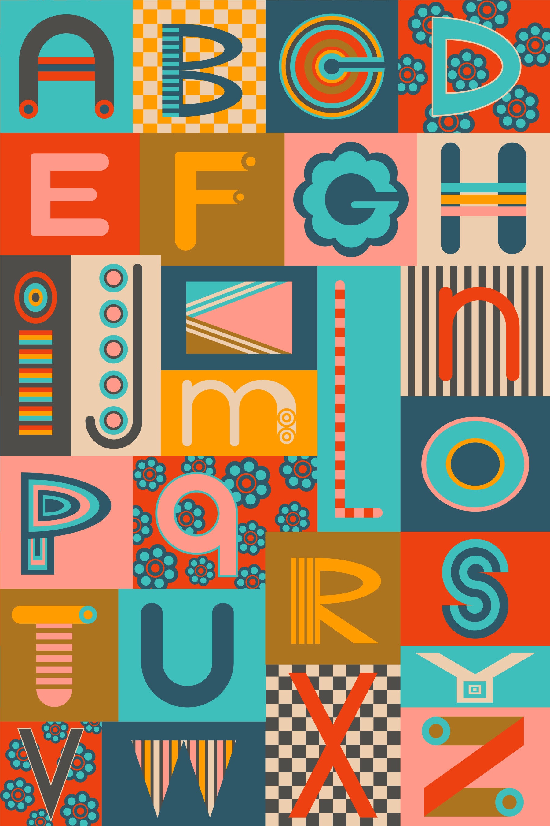 ABCs Postmodern Lettering wallpaper wicked retro palette stylish educational graphic dope.