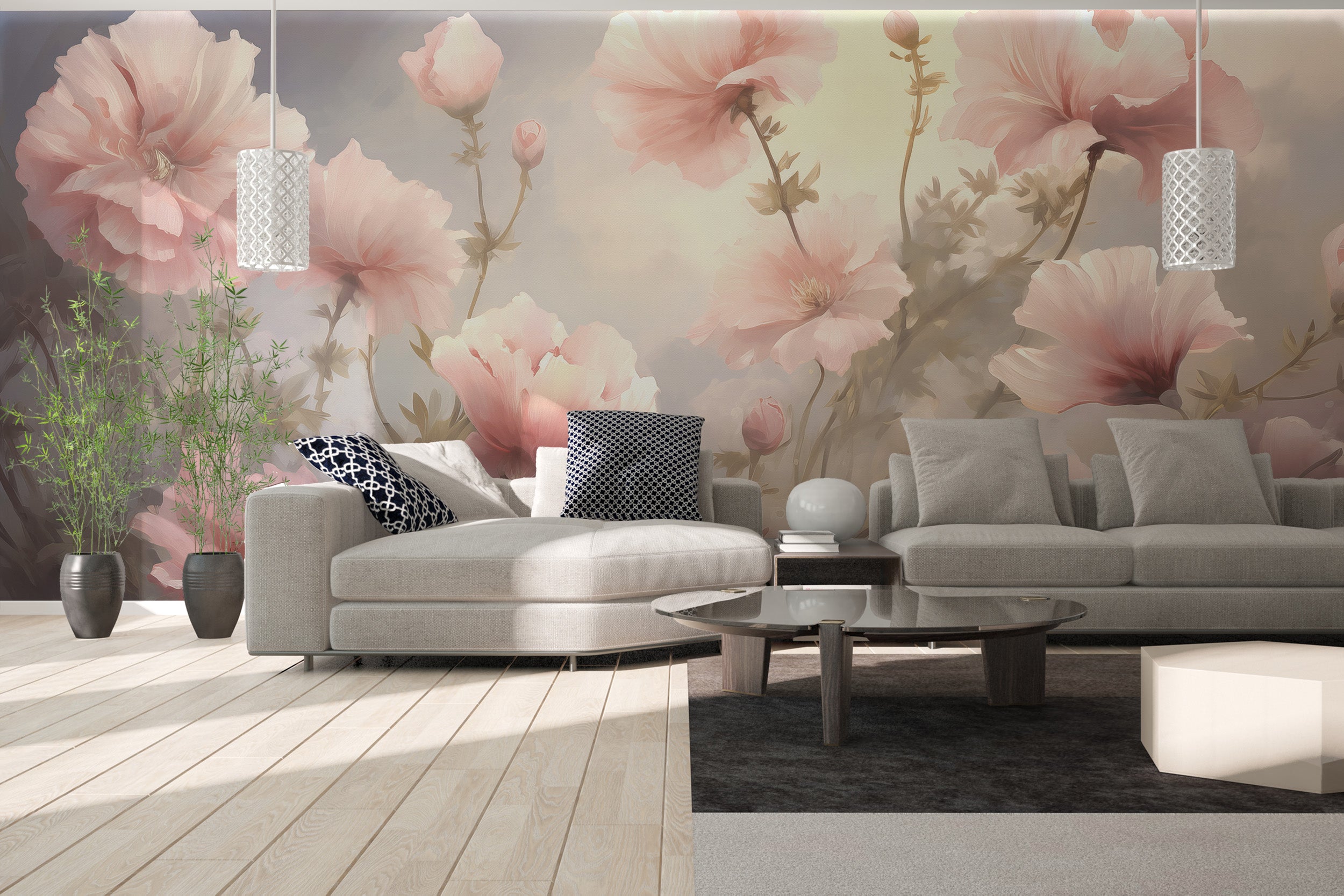 Add warmth to your room with Godetia pink flower mural wallpaper.