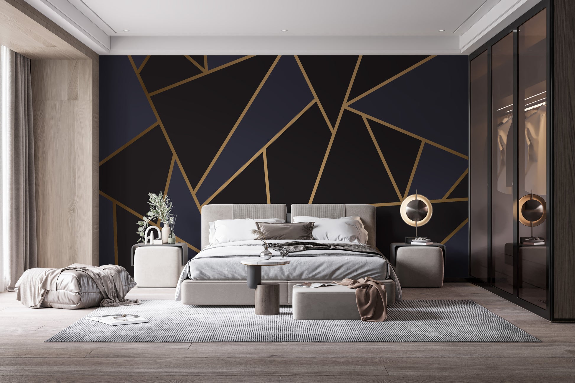 Blue and Gold Abstract Mosaic Wallpaper Murals - Giffywalls