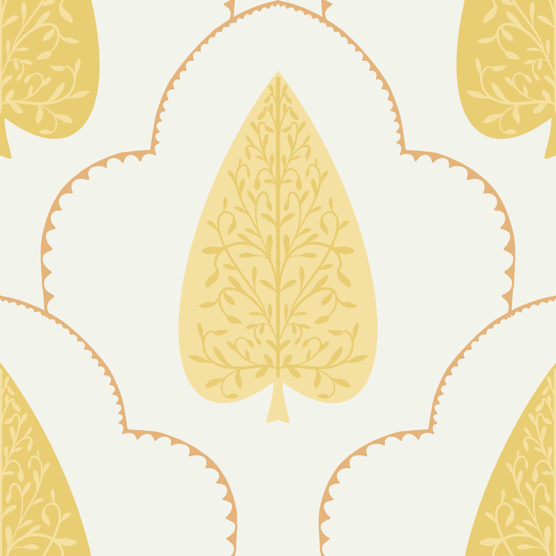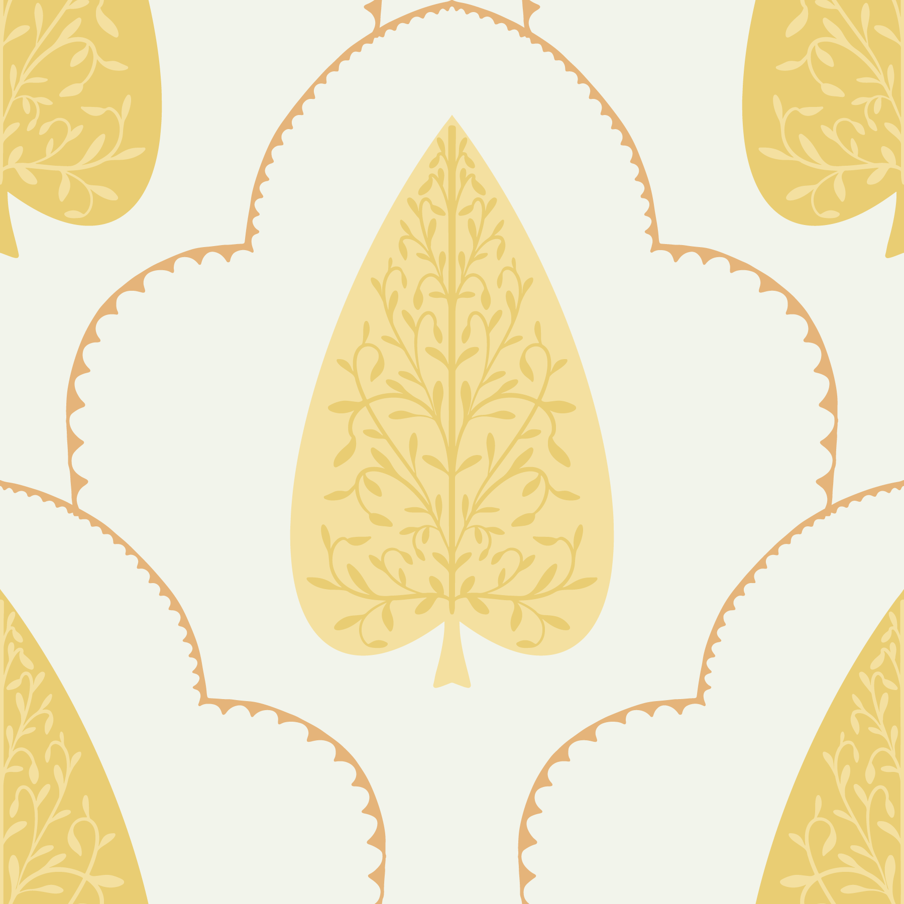 Ogee arched scallop wallpaper, charming pale yellow detail, Golden Branch.