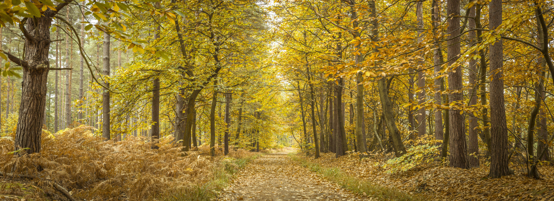 Vivid autumn Golden Canopy Trail golden woodland canopy and undergrowth.