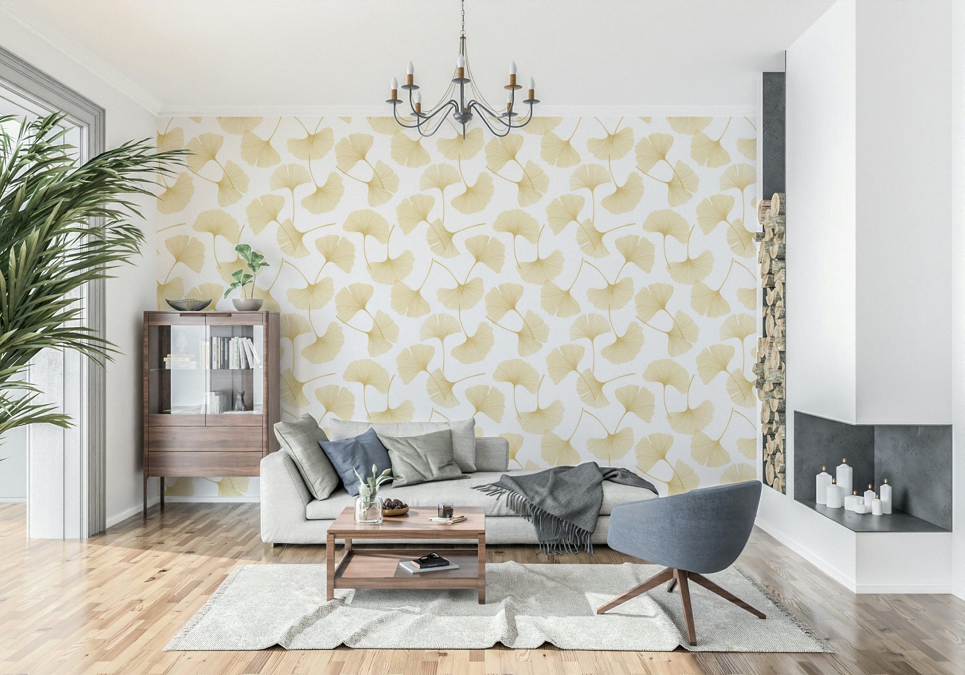 Transform your interior with this serene ginkgo leaf wallpaper for walls. Delicate golden lines create a captivating botanical pattern against a clean white backdrop, bringing an airy touch to any room. Perfect for living rooms, bedrooms, or hallways, this design introduces a subtle nature-inspired motif. The warm gold hues add a touch of elegance and sophistication whilst complementing a variety of colour schemes. Invite tranquility into your home with this timeless botanical wallpaper that enhances and softens living spaces.