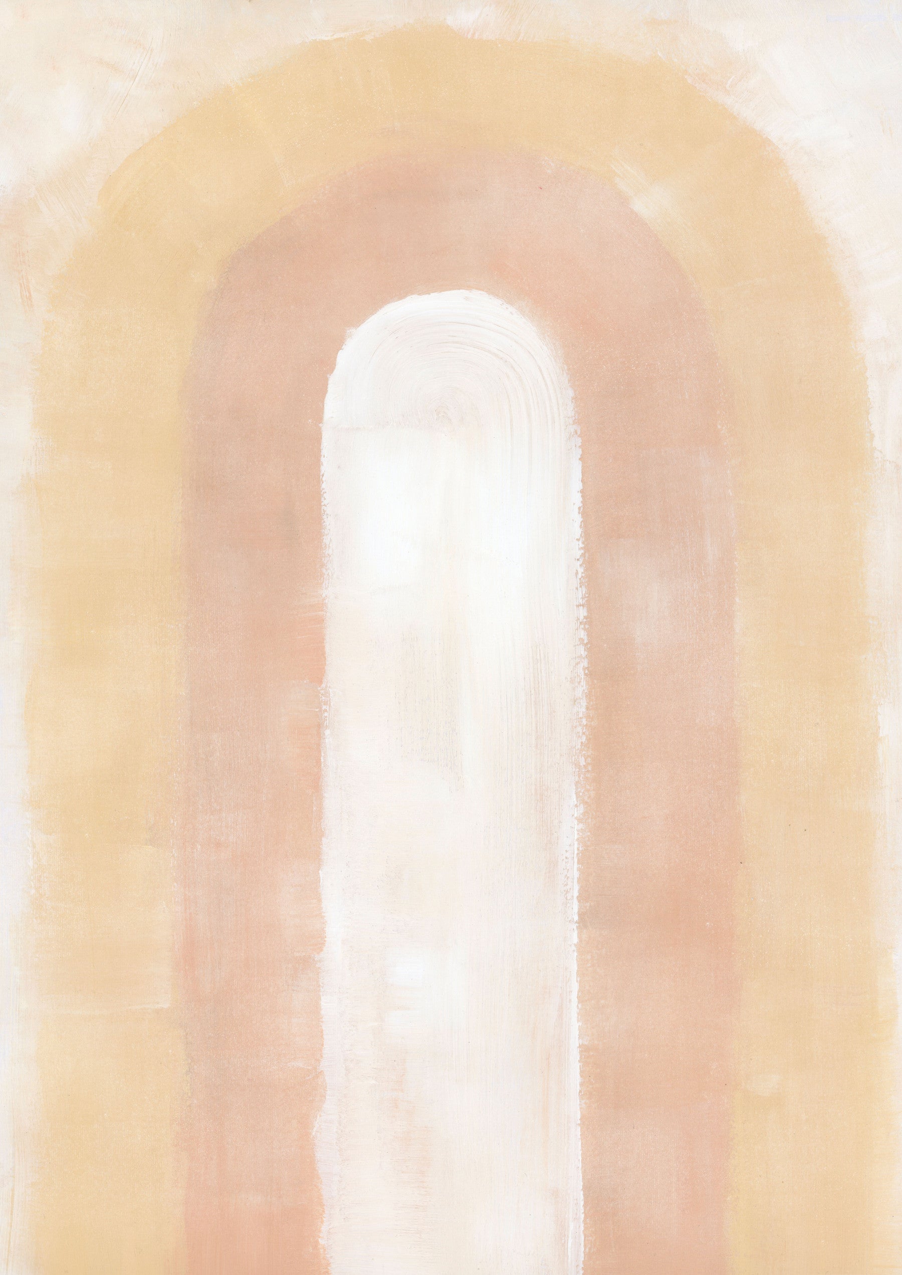 Embrace serenity with this "Golden Glow Arch Wallpaper." Soft, muted tones of blush pink and creamy beige create a gentle, arched frame around a central expanse of bright white. The painterly texture adds a touch of handcrafted warmth, evoking feelings of calm and minimalist elegance. Perfect for a calming bedroom, peaceful meditation space, or anywhere you need a touch of understated luxury, this wallpaper delivers a subtle yet sophisticated ambiance. The subtle color gradient and the soft brushstrokes create a visually appealing and relaxing backdrop for your digital devices.