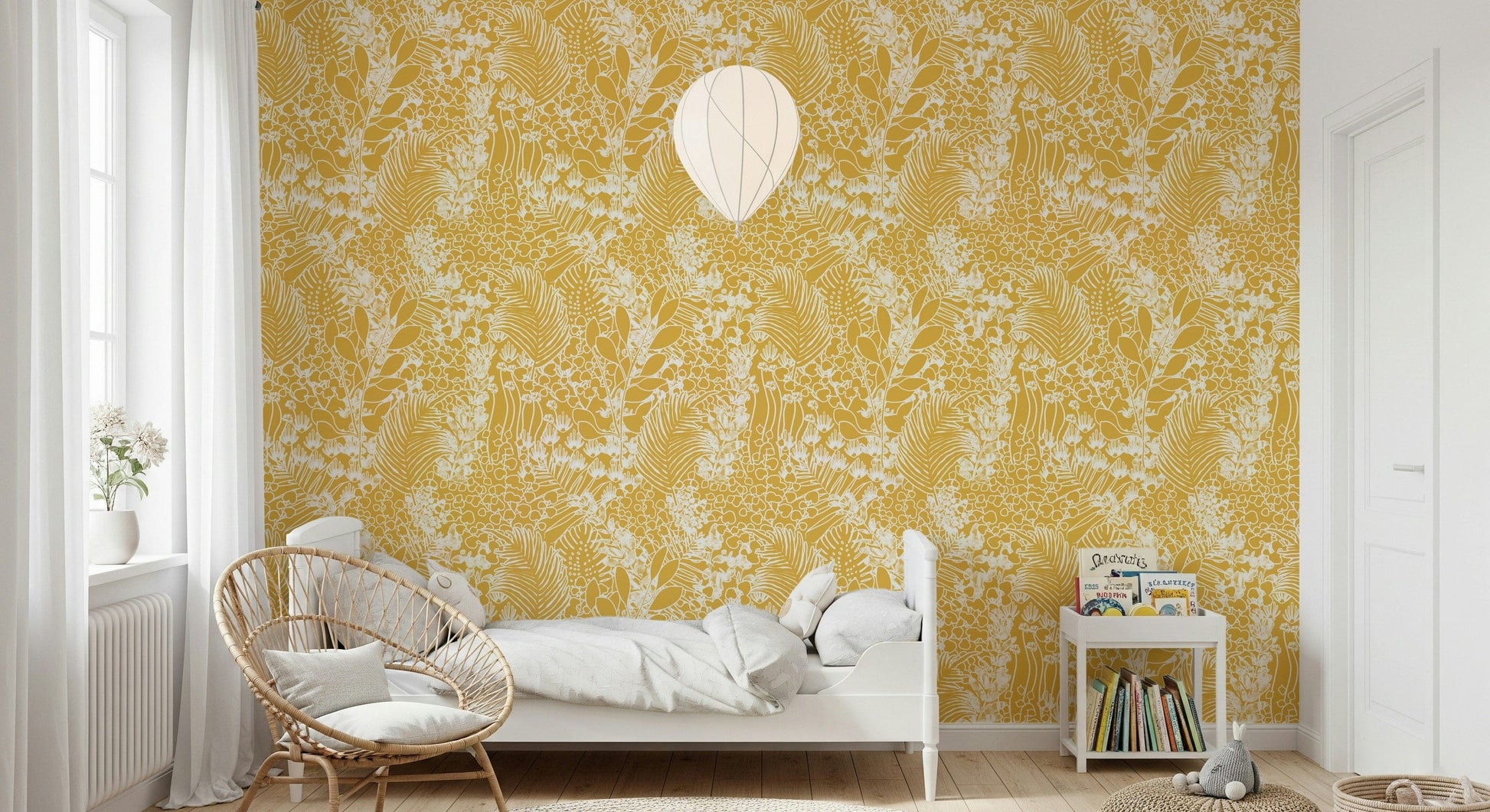 Transform your space into a tranquil haven with "Golden Meadow Dream," a wall décor that captures the essence of a sun-kissed field teeming with life. Delicate floral outlines and bold leaf shapes intertwine, creating a captivating dance of nature's artistry. The background evokes the warmth of the golden hour, casting a soft, inviting glow throughout the design. White and Creamy accents highlight the intricate details, providing a touch of ethereal elegance. This stunning piece is perfect for adding a touch of natural beauty and serene sophistication to any room. The overall effect is an immersive experience, a visual journey into a flourishing landscape that soothes the soul and inspires a sense of wonder.