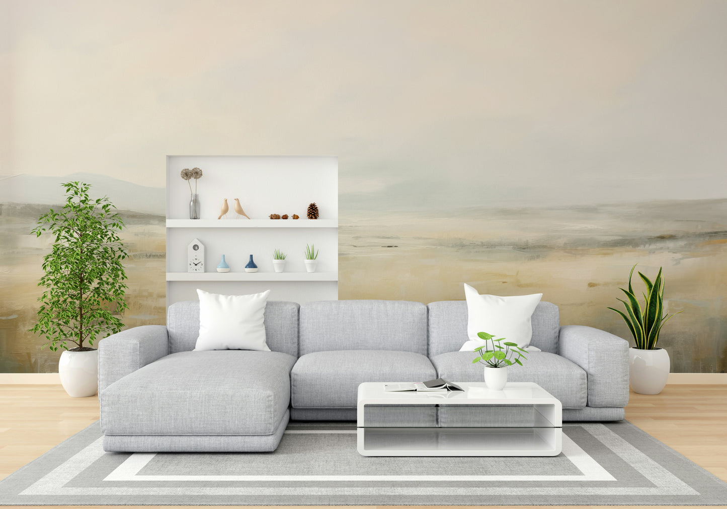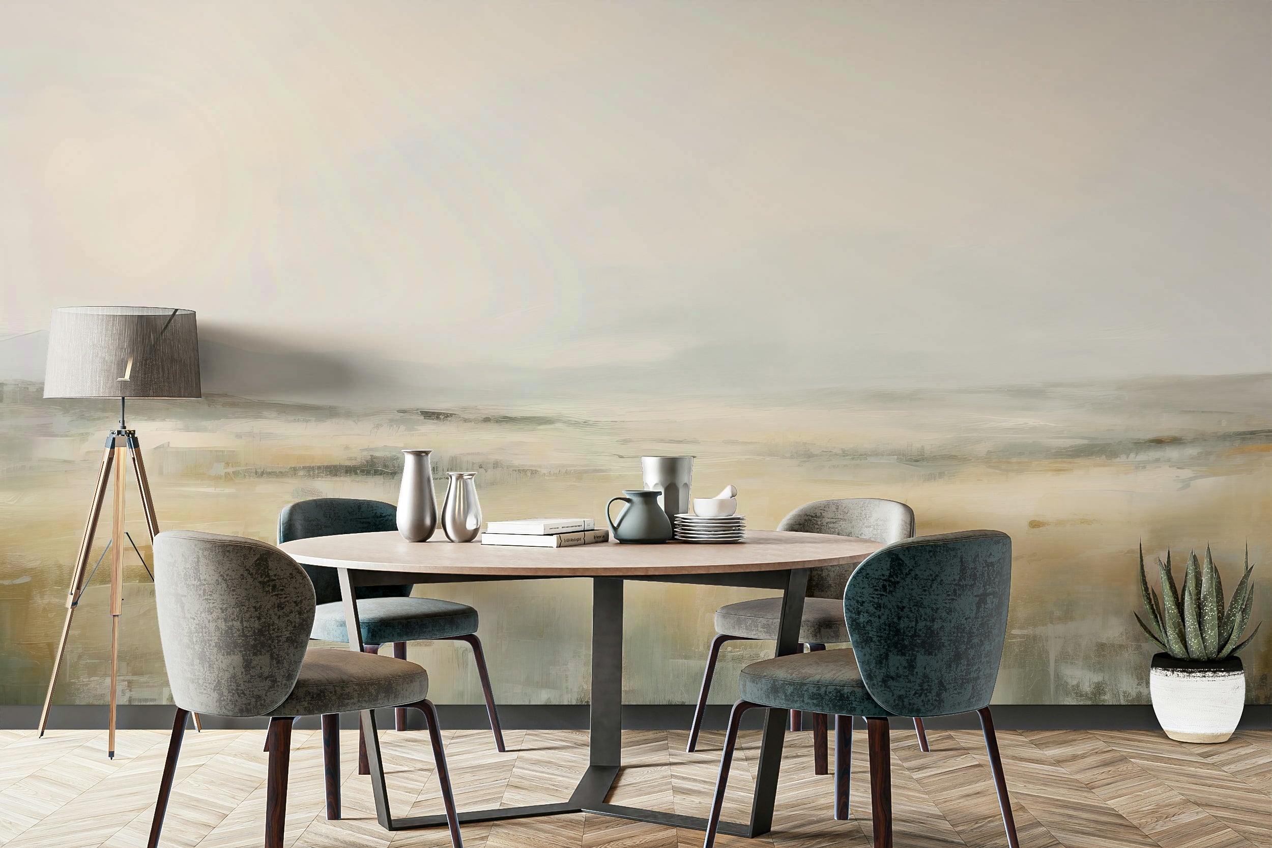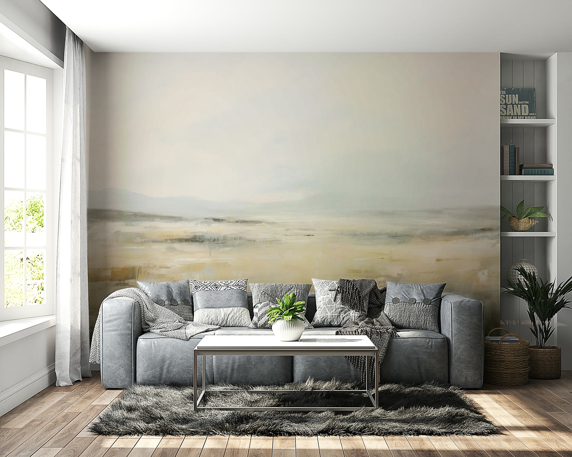 Bring serenity to your walls with this soothing artwork. The palette includes soft grays, gentle beige, and hints of golden yellow. It creates a calm and relaxing scene in any room. This wallpaper for walls is an excellent choice for bedrooms and living rooms. The landscape is great for adding depth and texture to create an airy feel. The subtle blending of shades provides a peaceful aura within the interiors.